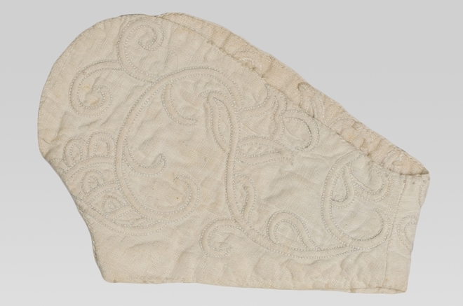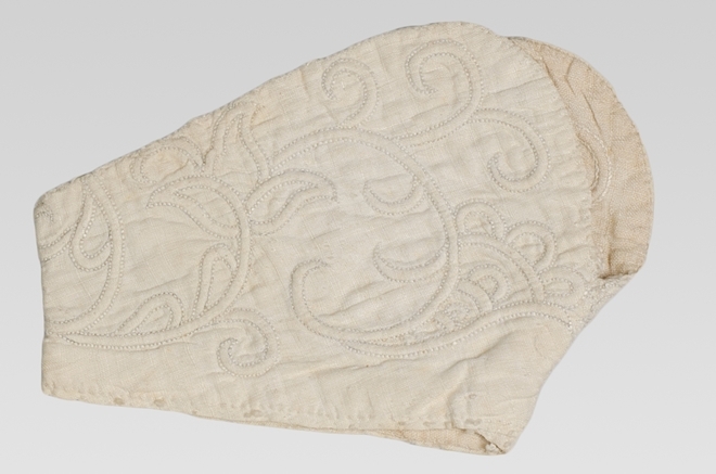 Enkele losse mouwopslag van Zaans stikwerk, van babyjakje of mouwtje