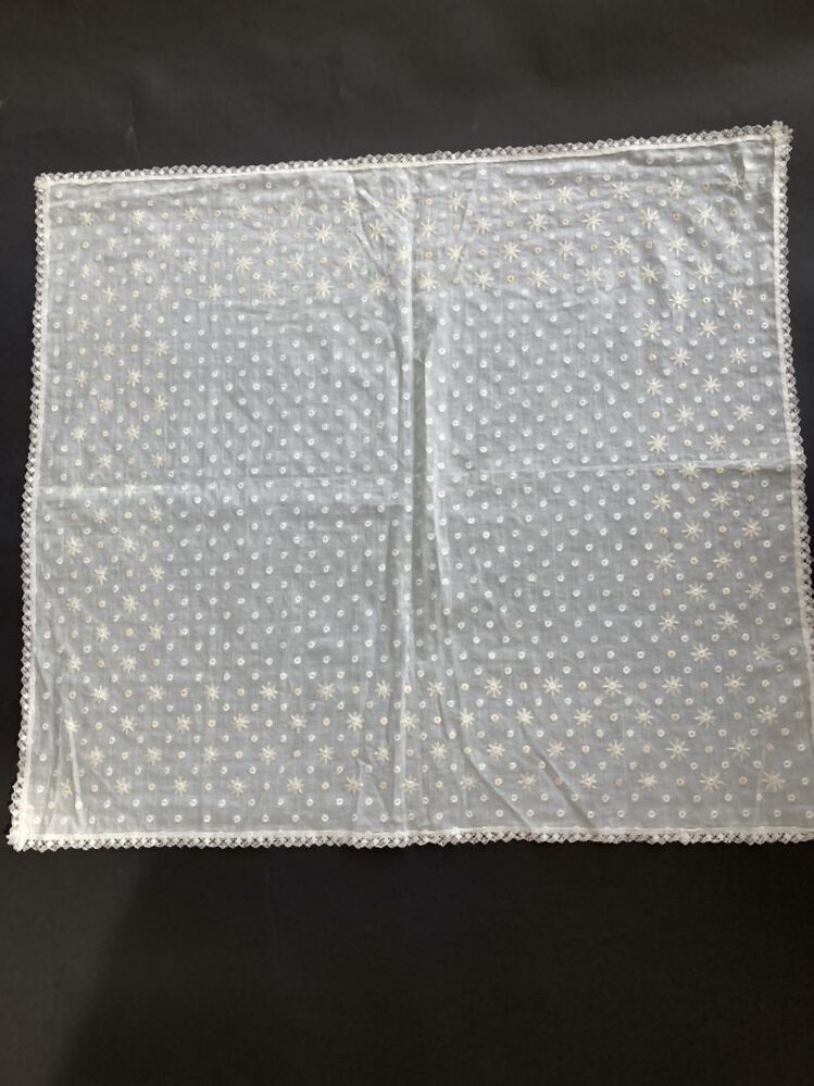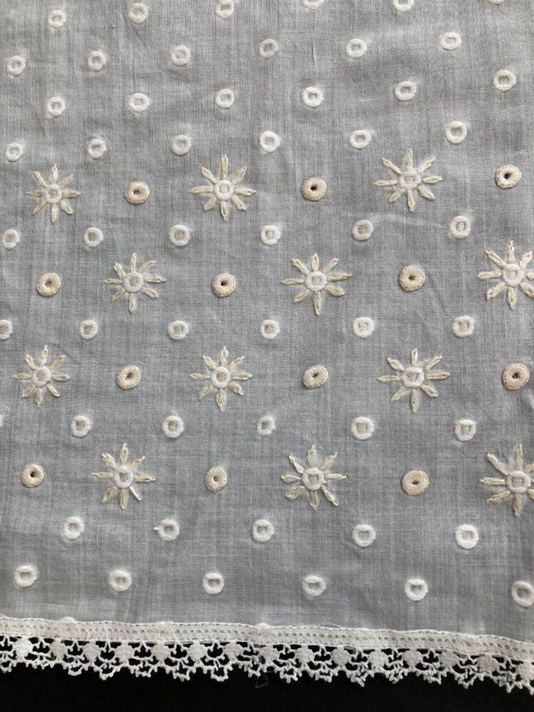 Verwijst naar werken die zich kenmerken door een patroon of ontwerp dat is uitgevoerd in met draad of fijn metaaldraad gemaakte steken. De patronen worden gewoonlijk uitgevoerd op stof, maar ook leer, papier of andere media kunnen worden gebruikt; de werken kunnen bedoeld zijn om ingelijst te worden of om kleding, bedtextiel, meubelbekleding, kussens, altaarkleden, ceremoniële voorhangen of andere zaken te versieren. (AAT)