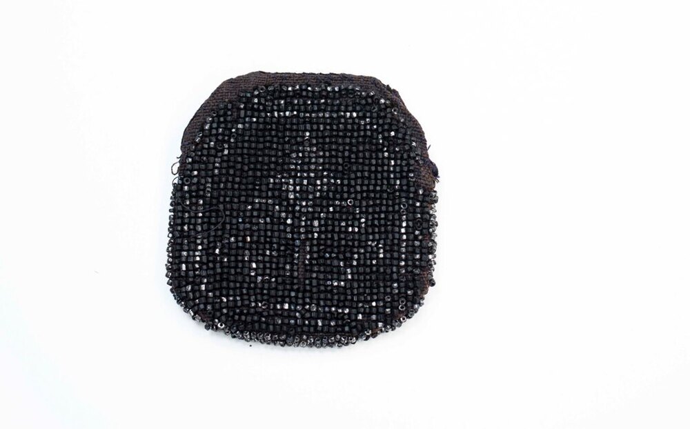 Zwart rouwbeursje geborduurd met kralen in zwart en zilver