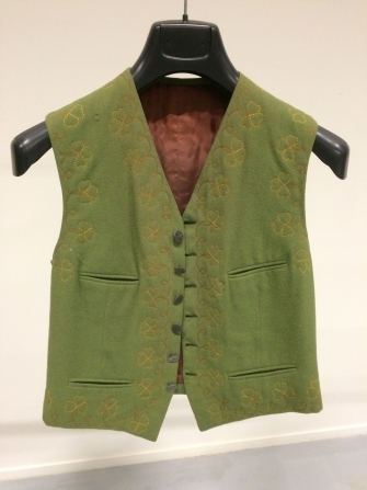 Vest van grijsgroen kamgaren, onderdeel van Nieuw Fries Mannenkostuum