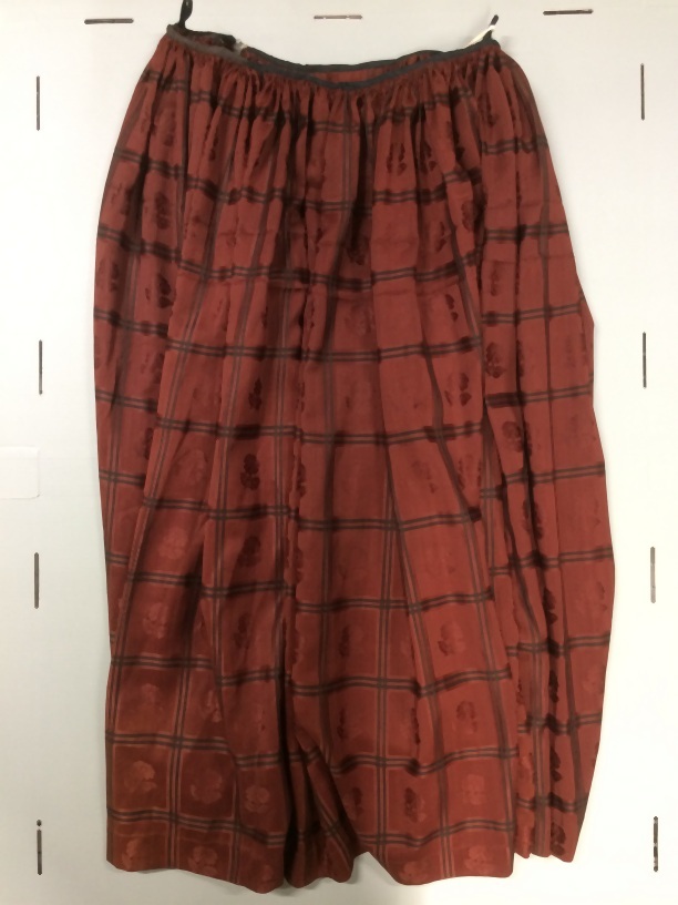 Geruite wollen rok, van kostuum met ingeweven bloemen