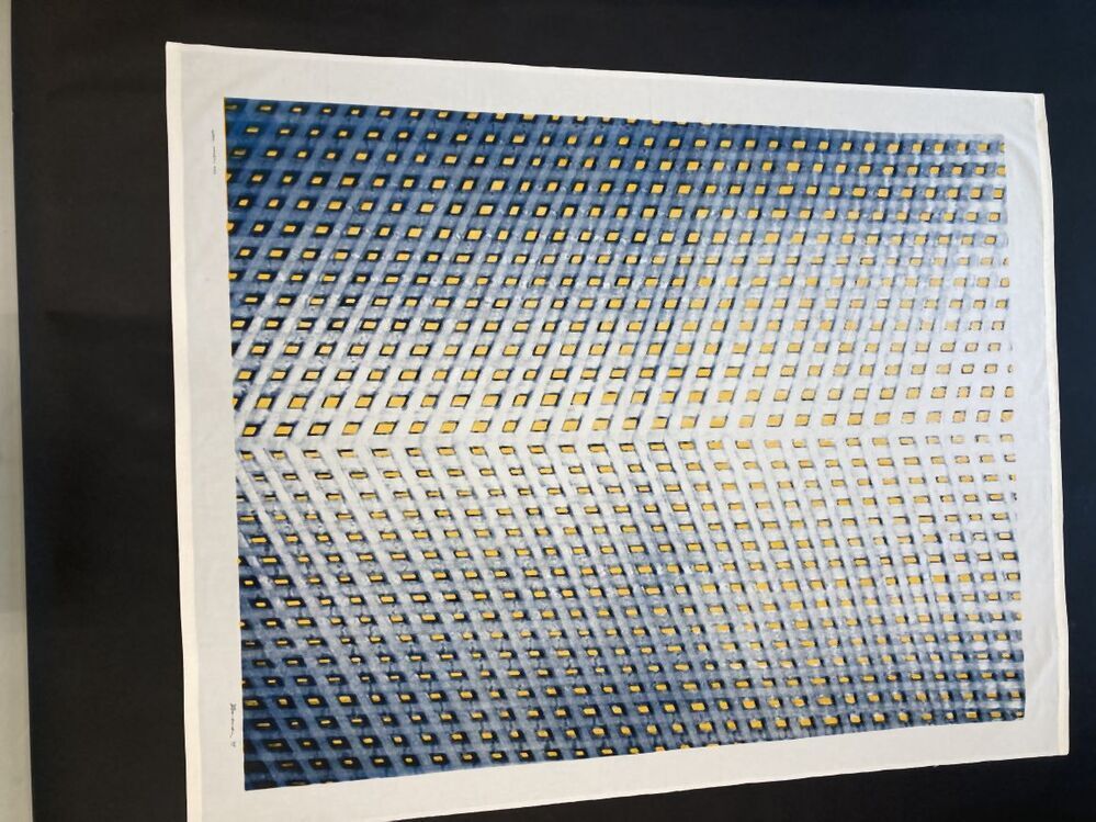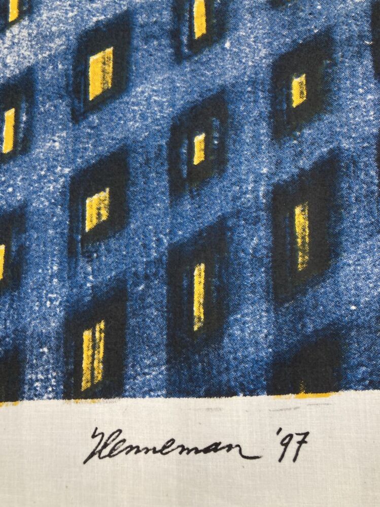 Tafellaken met zeefdruk van flatgebouw, gevelwanden