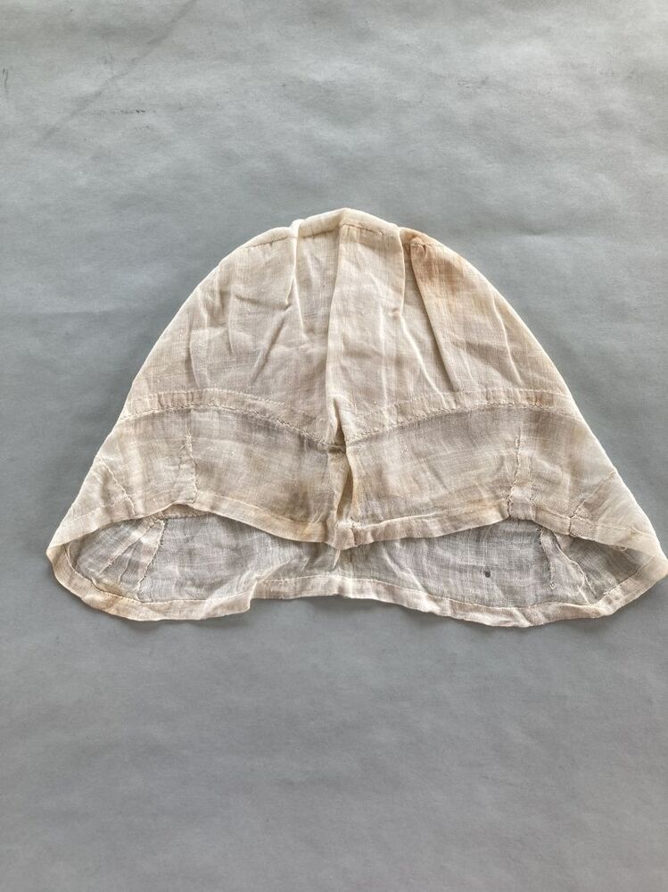 Tipmuts van linnen met volie strook rondom, voor in de rouw