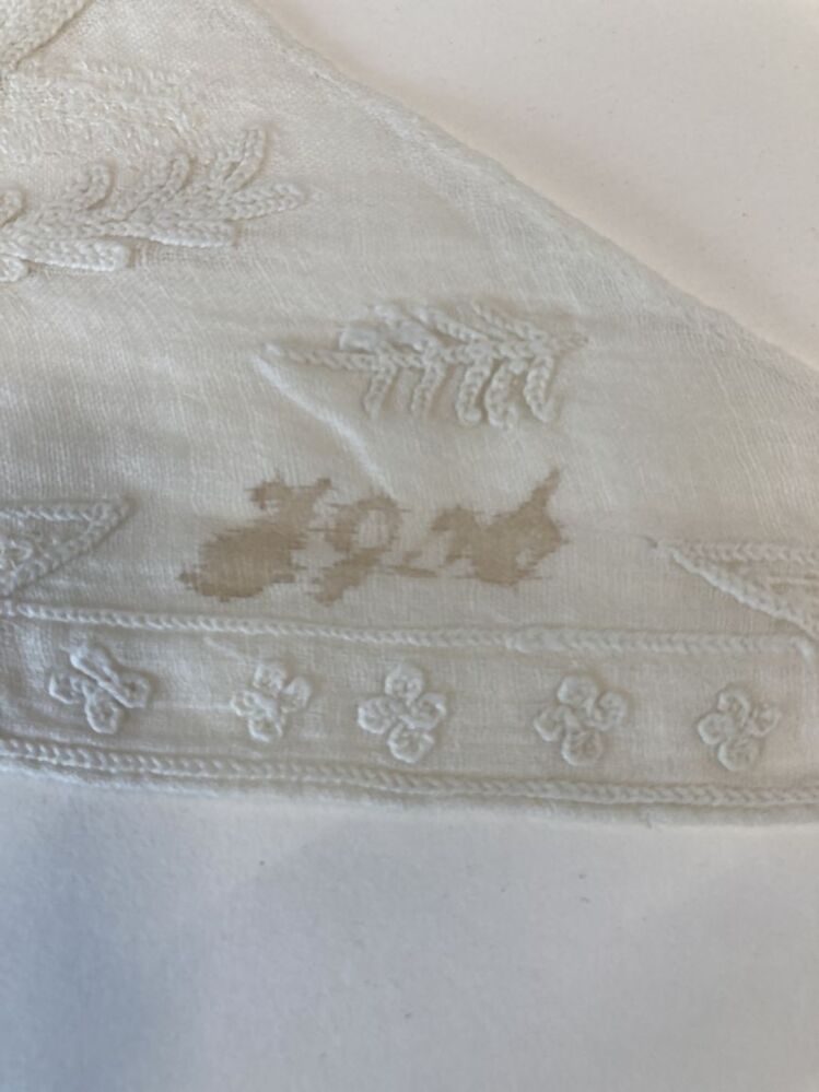 1) hals- of hoofddoek die met een tip (uiteinde) op de rug wordt vastgespeld. https://data.cultureelerfgoed.nl/term/id/cht/00c8692f-af9f-490f-b4ec-ec045b417f30