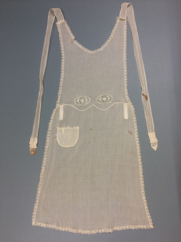 Sierschort van crèmekleurig batist afgezet met etskant, rondom afgezet met geschulpt etskantje
