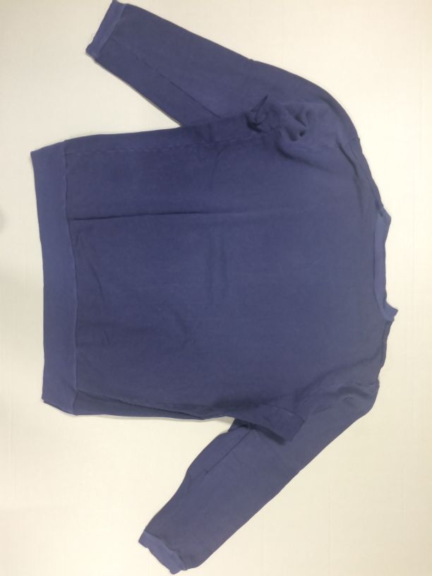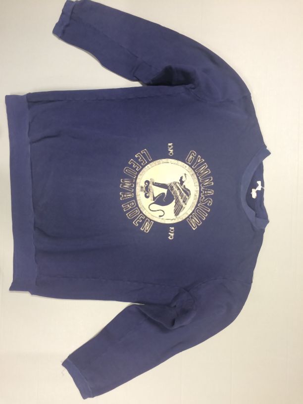 Blauw sweatshirt bedrukt met logo van het Gymnasium te Leeuwarden 1879-1979