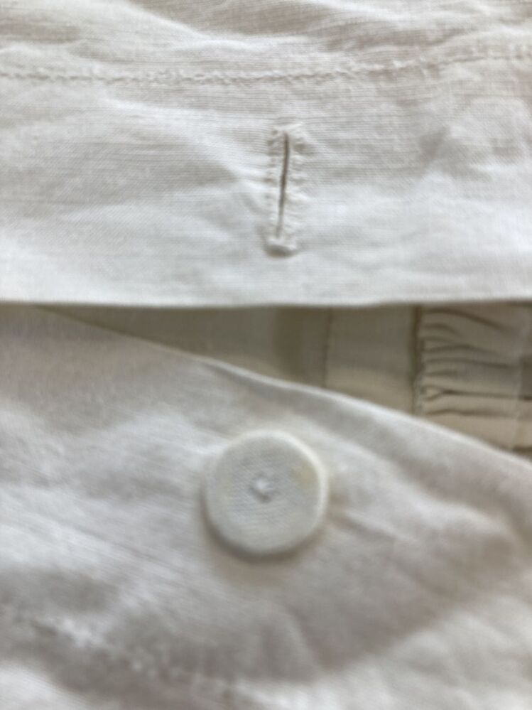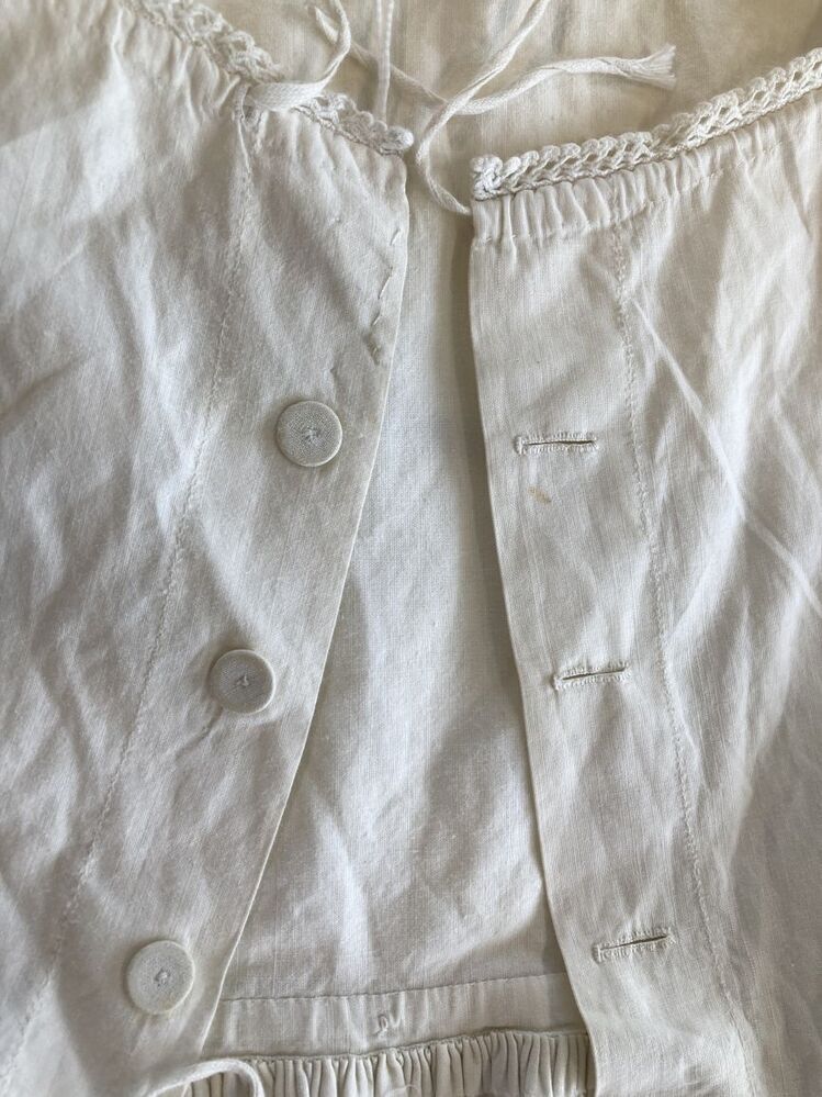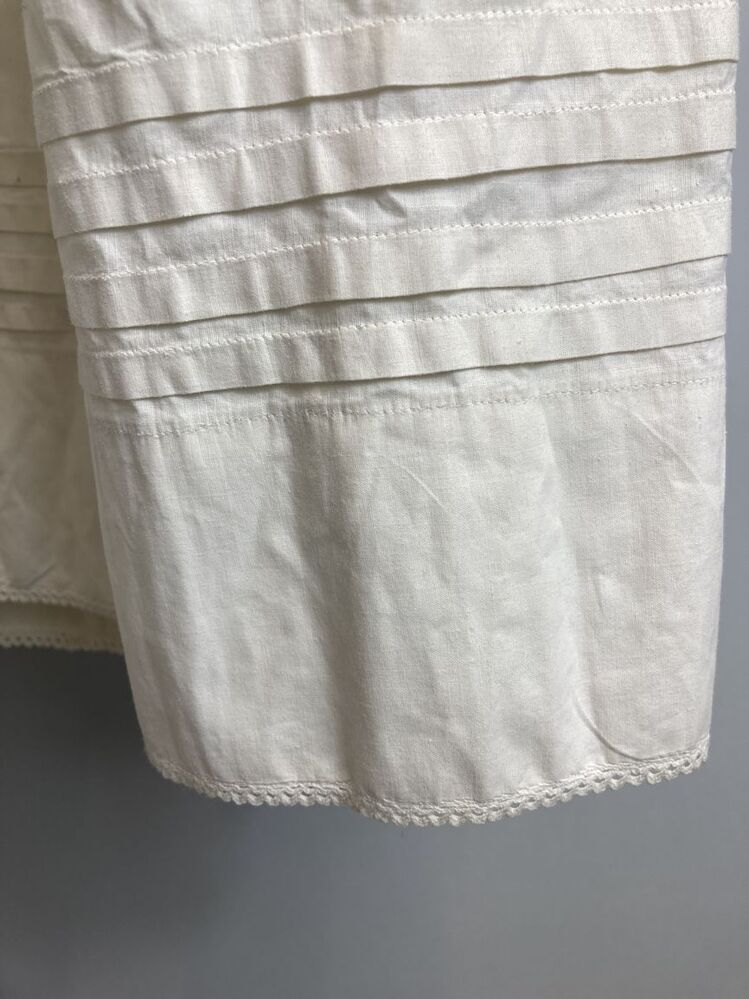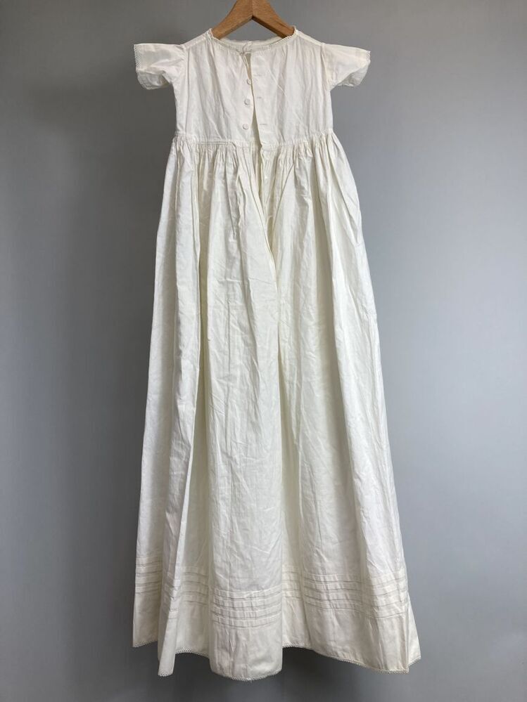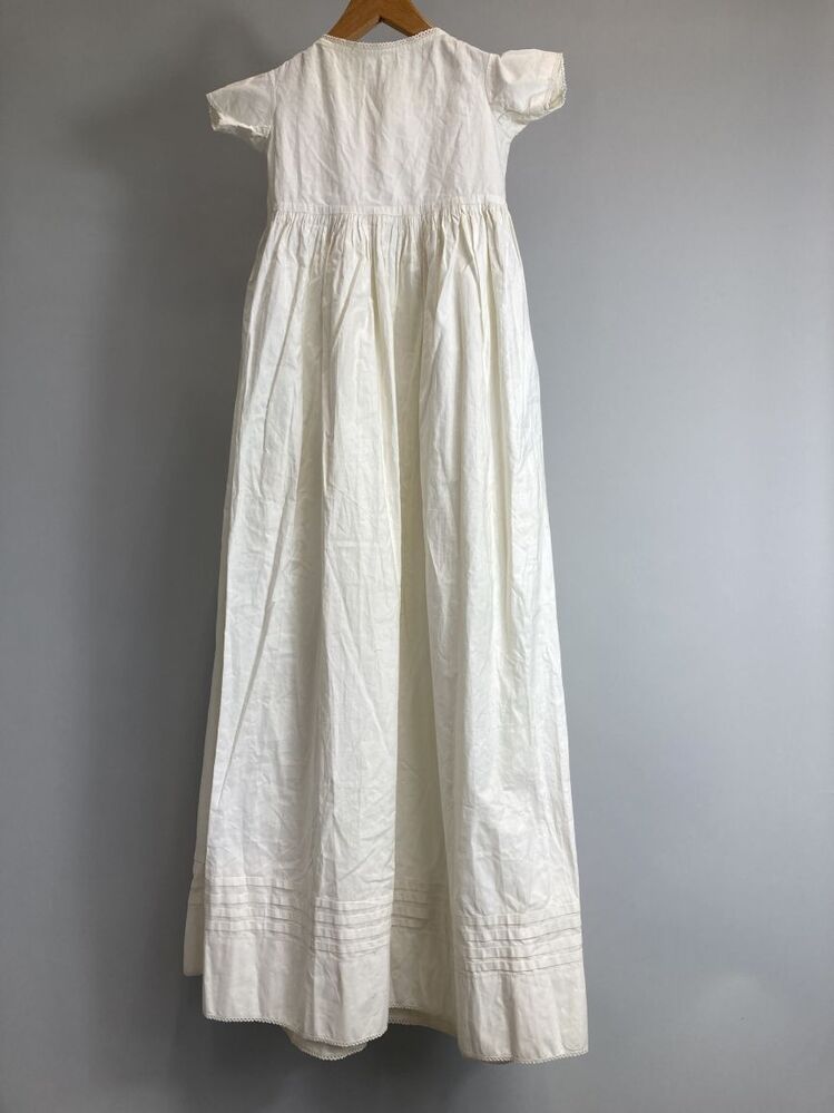 Katoenen onderjurk met korte mouwtjes afgewerkt met galon, horend bij doop- of draaggjurk