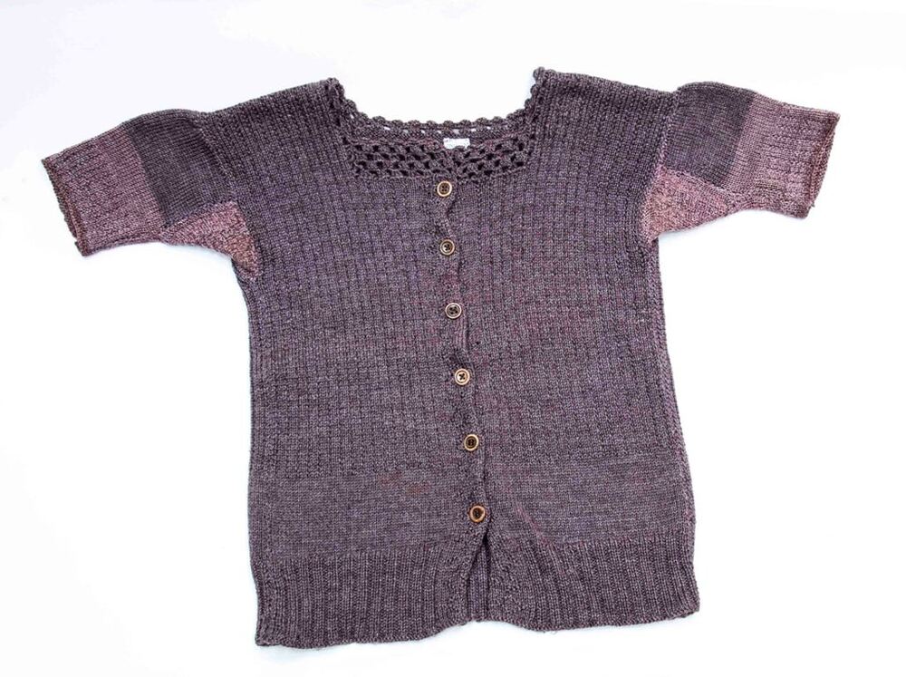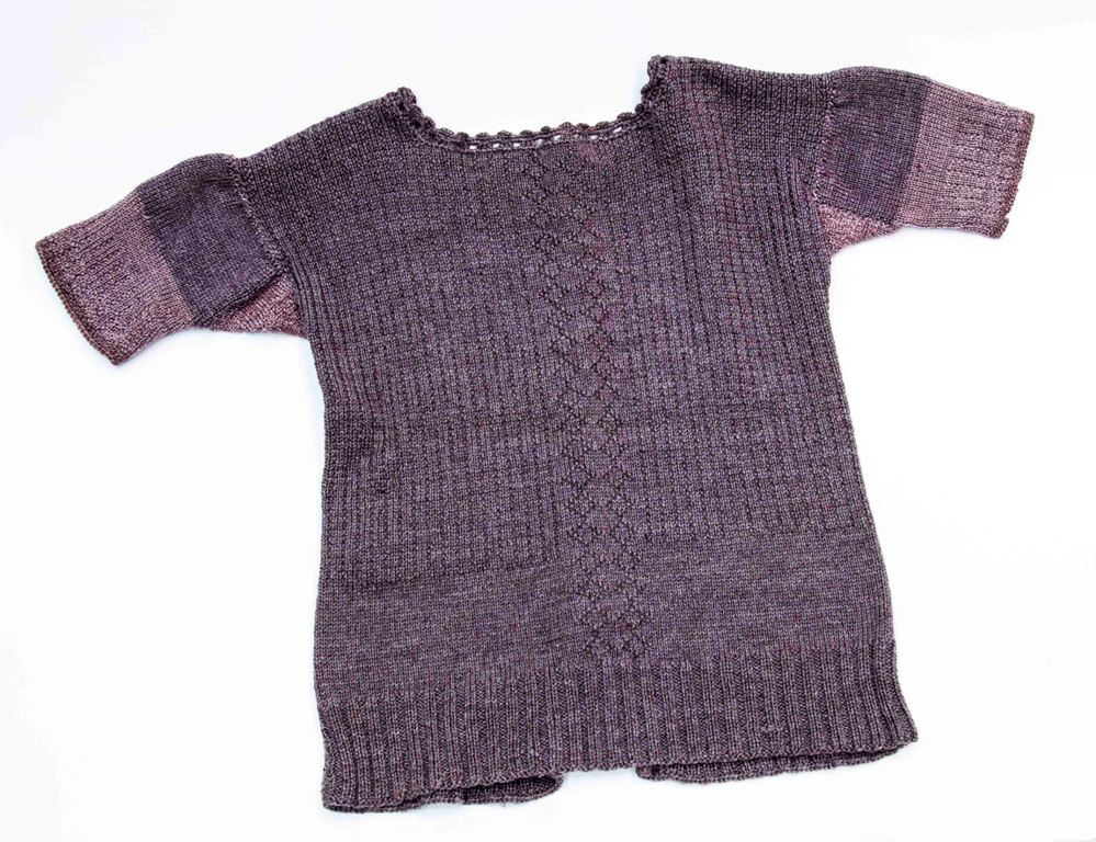 Borstrok gebreid van grijs-bruine wol met bijbehorende kousen in dezelfde kleur (B)
