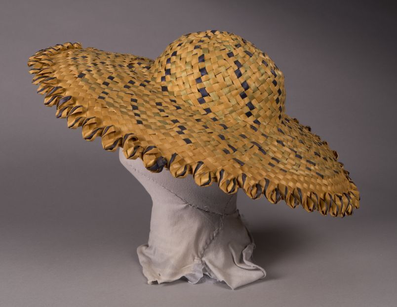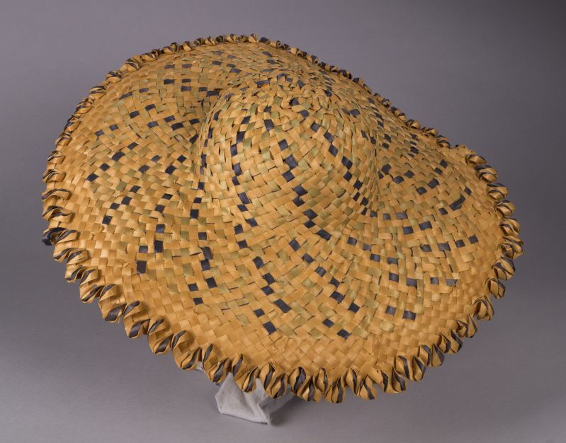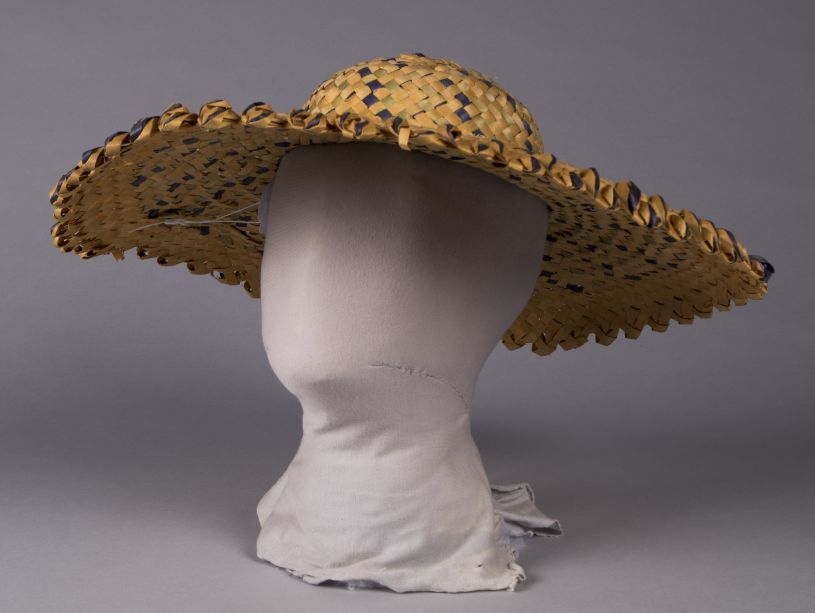 Strand- of tuinhoed van gekleurd spaan met reliëf rand