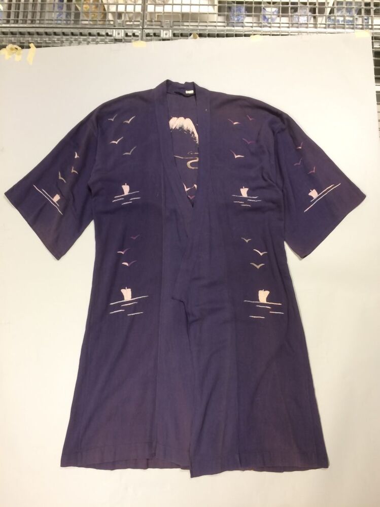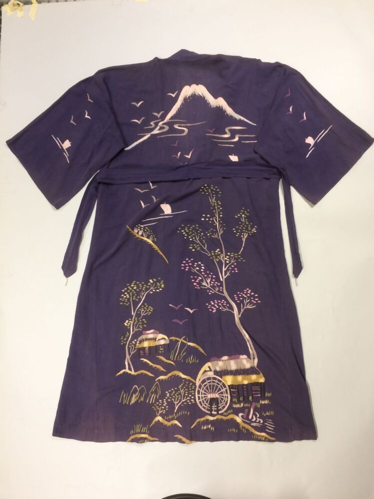 Katoenen kimono met geborduurd landschap met vulkaan