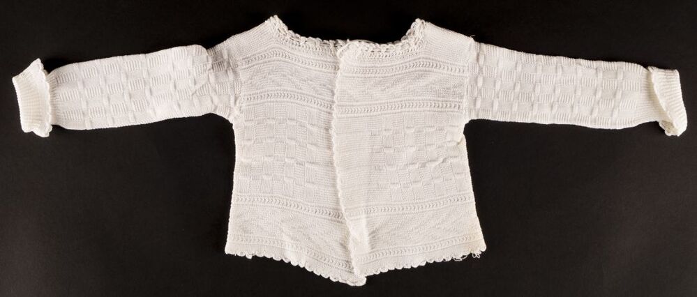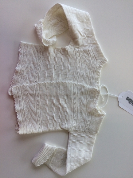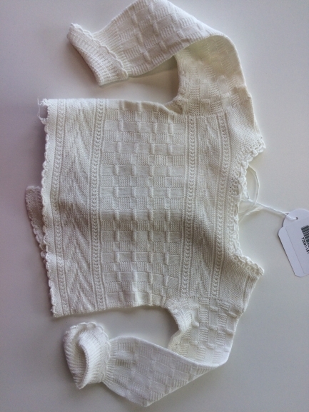 Wit glanskatoenen babytruitje met reliëfbreiwerk