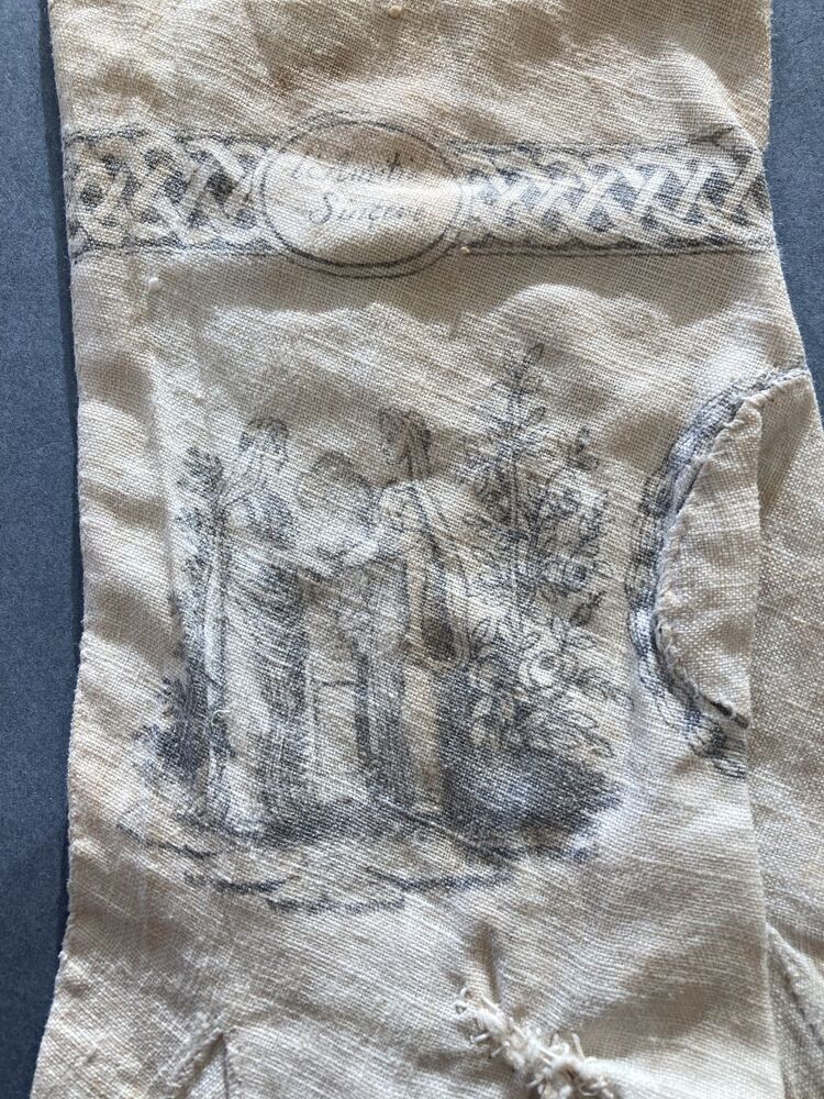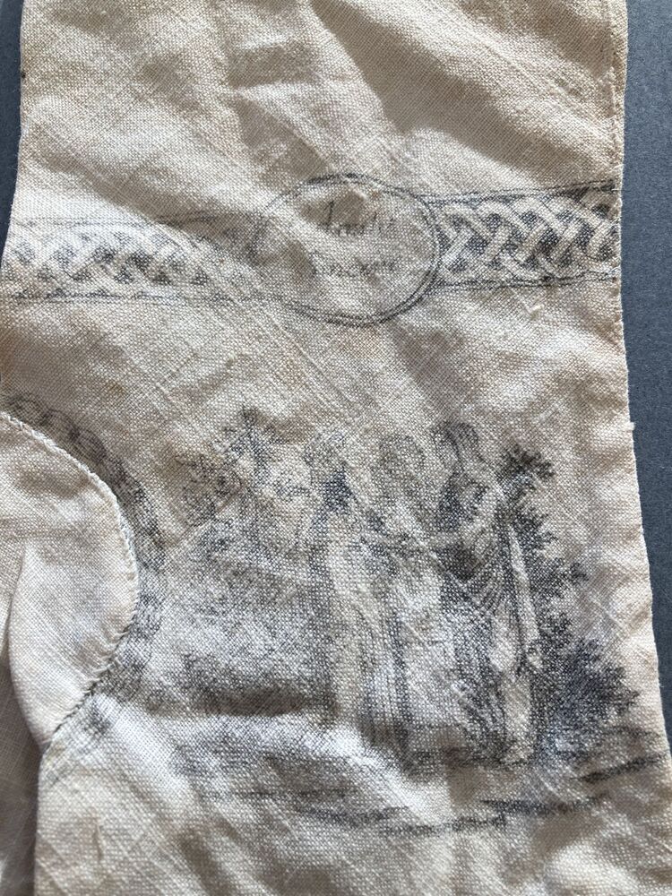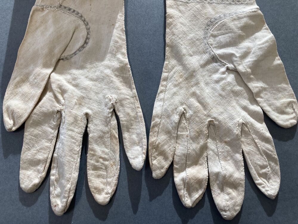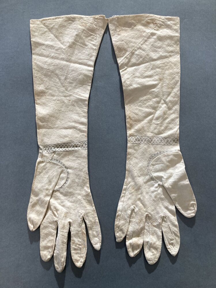 Paar lange dameshandschoenen van wit katoen bedrukt met tafereel en armband met l'Amitié Sincere,