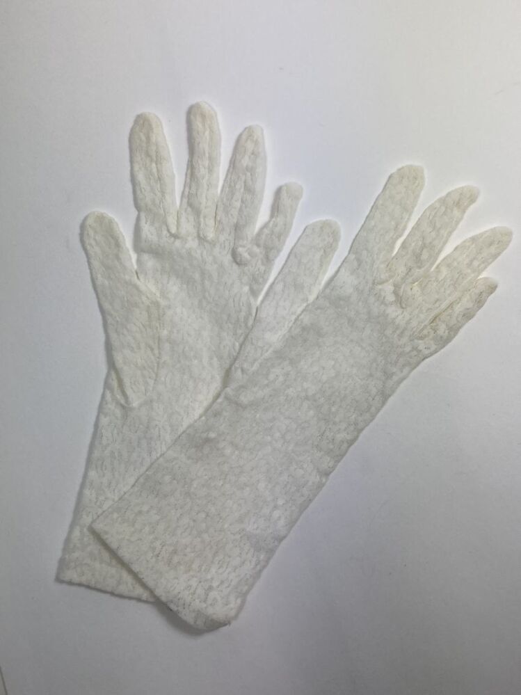 Handschoenen van witte stretchkant, behorend bij bruidsjapon (A)