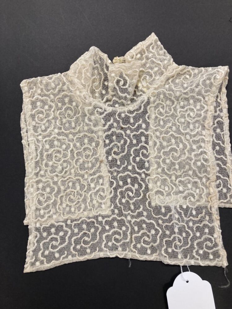 Frontje of guimpe met ondergrond van katoenen tule met (kunst)zijden verdikte draad versierd