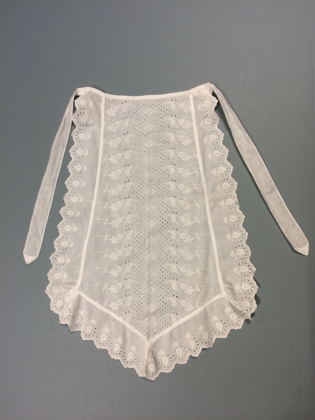 Theeschortje, brede symmetrische baan, omzoomd met geschulpt broderiekant