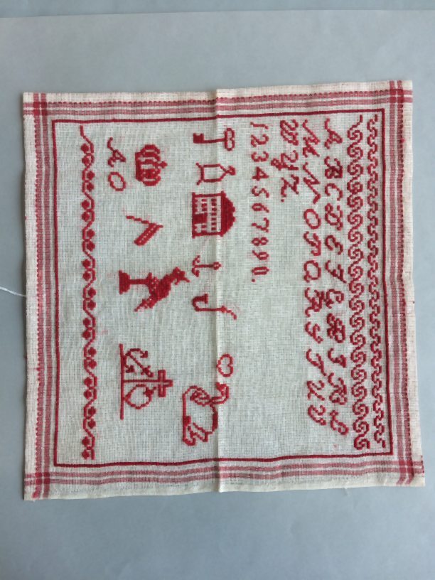 Merkletterlap op stramien, gemerkt AO