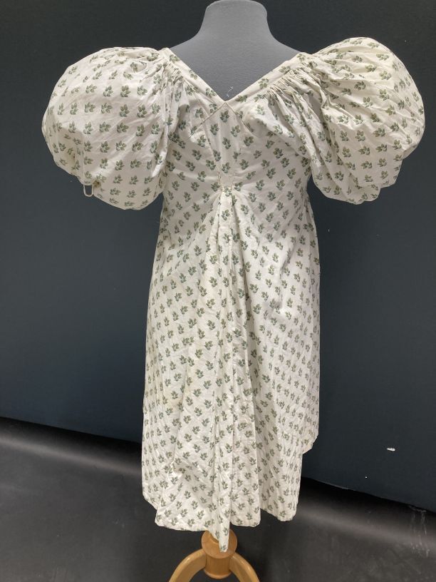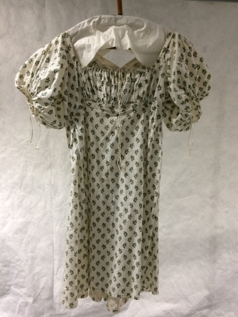Empire jak van wit katoen bedrukt met strooimotief van groene blaadjes
