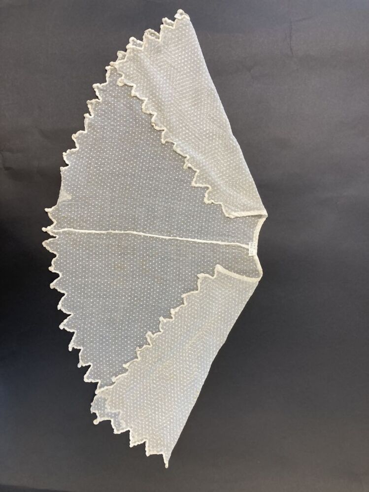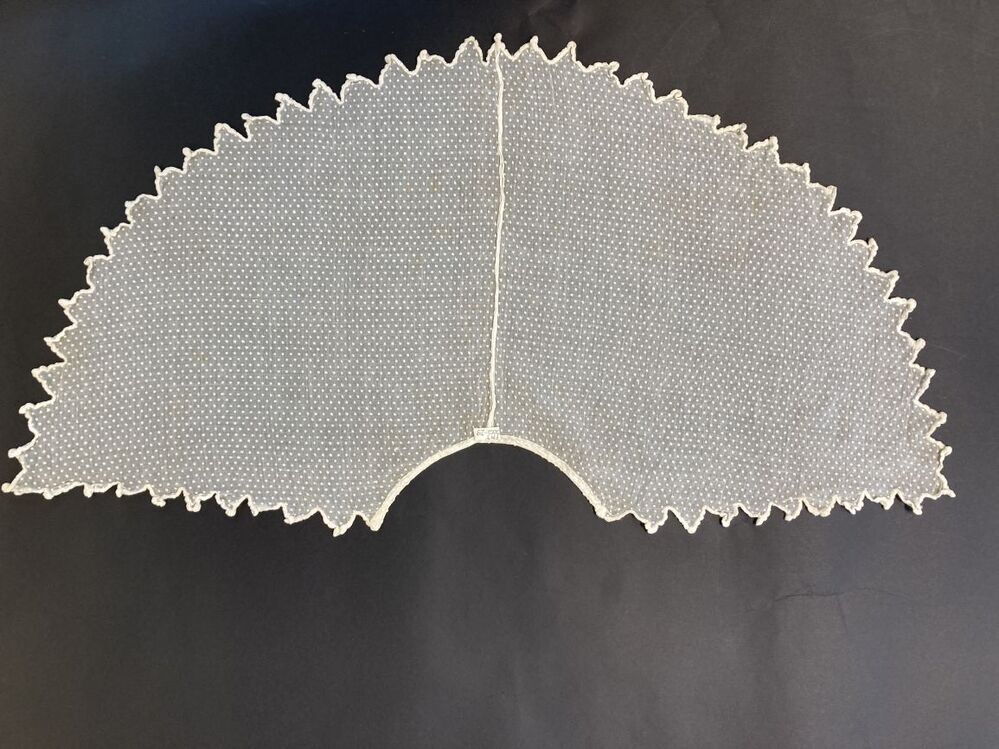 Schouderkraag van wit genopt neteldoek met zigzagrand