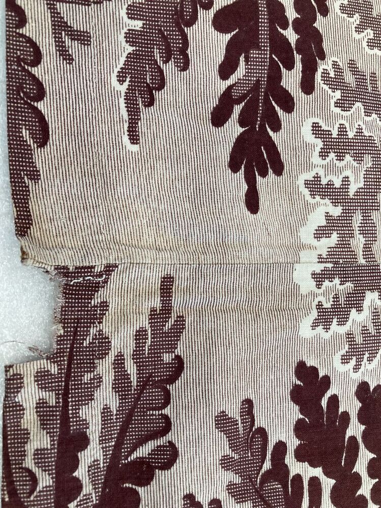 Katoenen bedrukt gordijn met grote geveerde auberginekleurige bladeren,