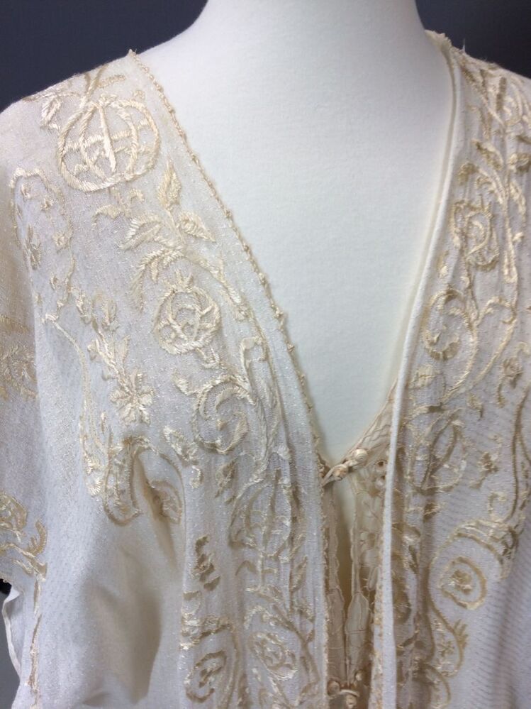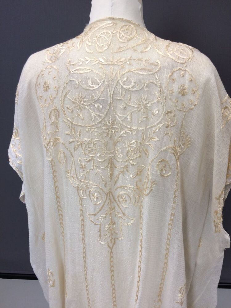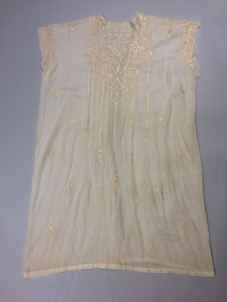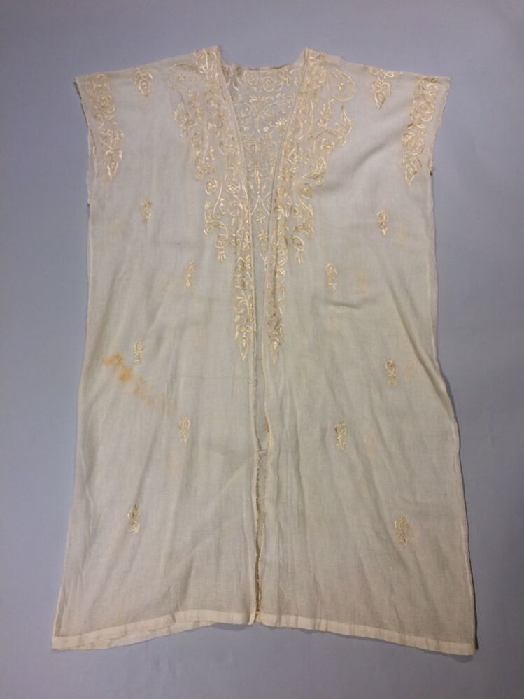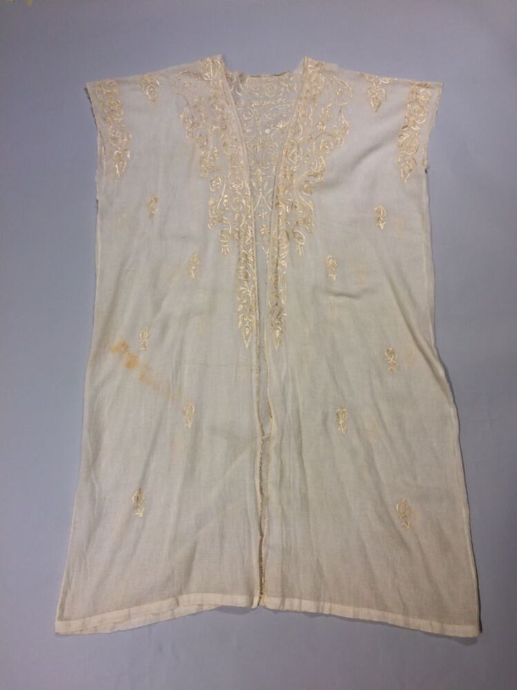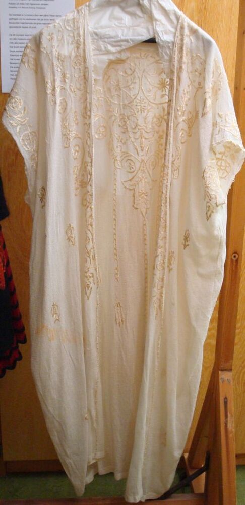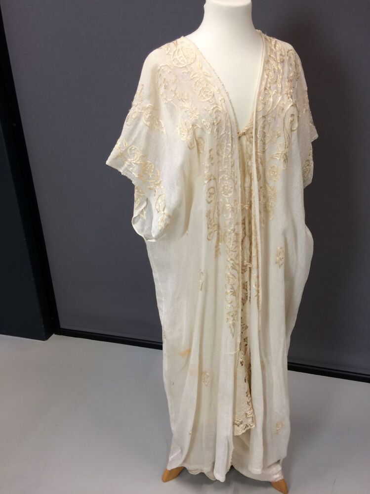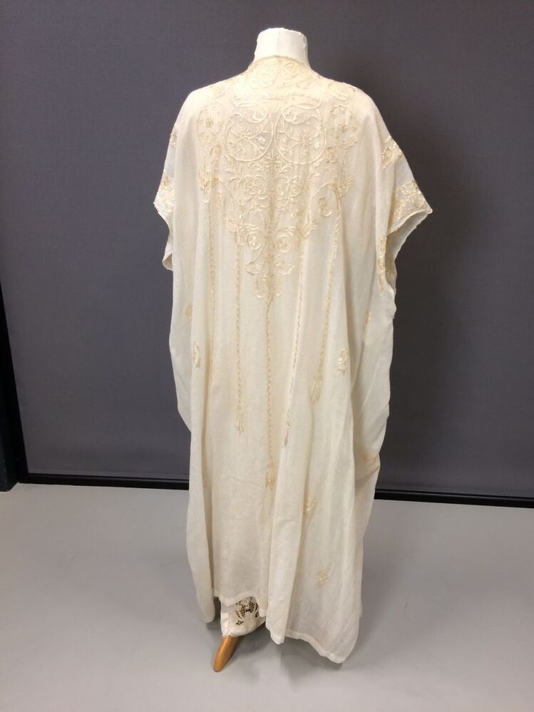 Wit katoenen kaftan met zijden borduurwerk, negligékleding