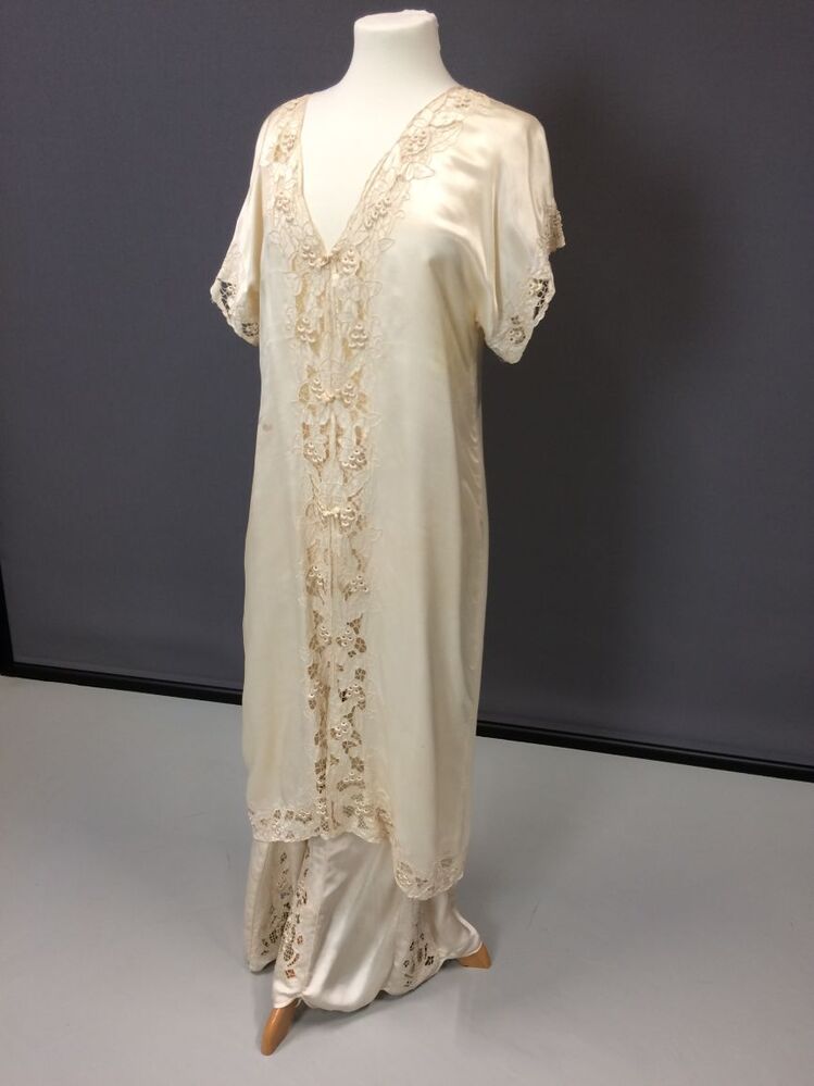 Cremekleurige zijden pyjamajas, hoort bij pyjamabroek