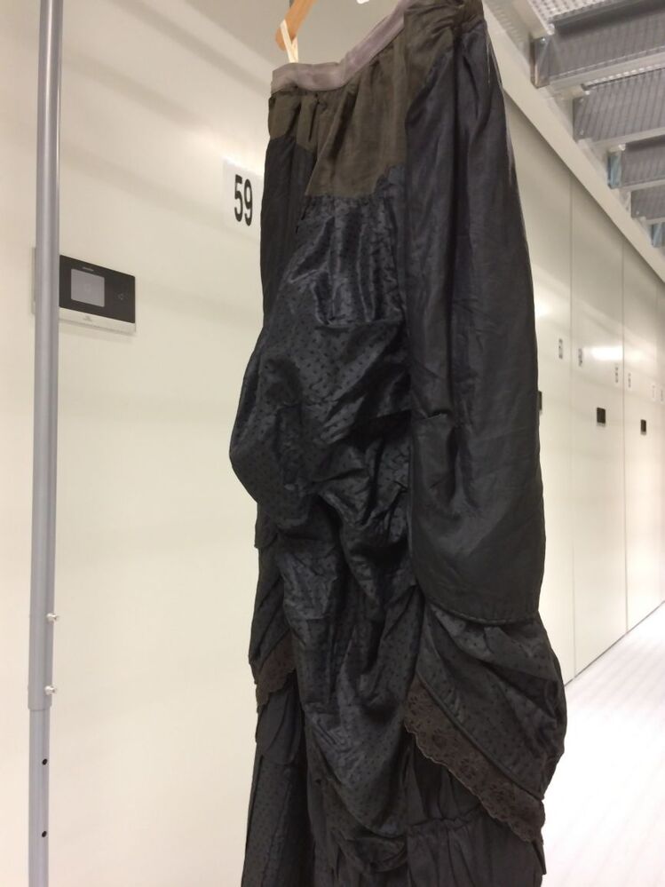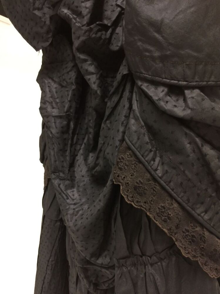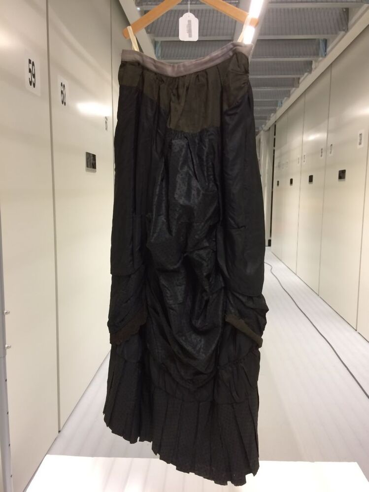 Rok van zwart zijden jak met rok met queue met ingeweven blaadjes volledig gevoerd