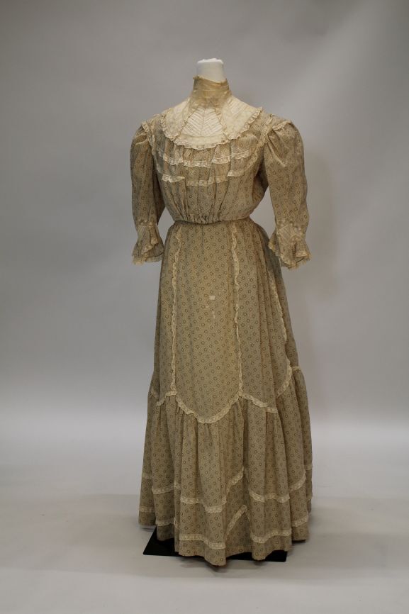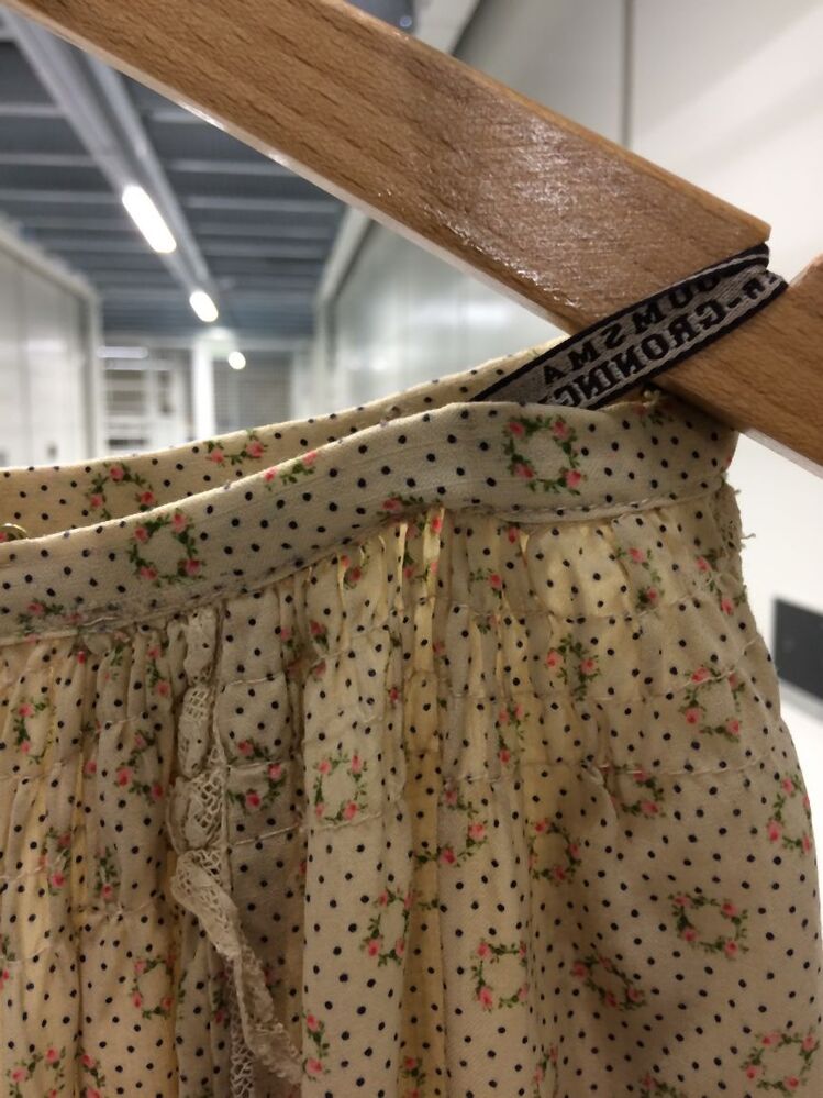 Katoenen rok met stipje en bloem moief met veel kant in s-lijn, onderdeel van kostuum