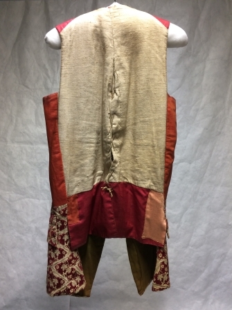 Lang kamizool, voorpanden met ingeweven slingerende banen en bloemetjes