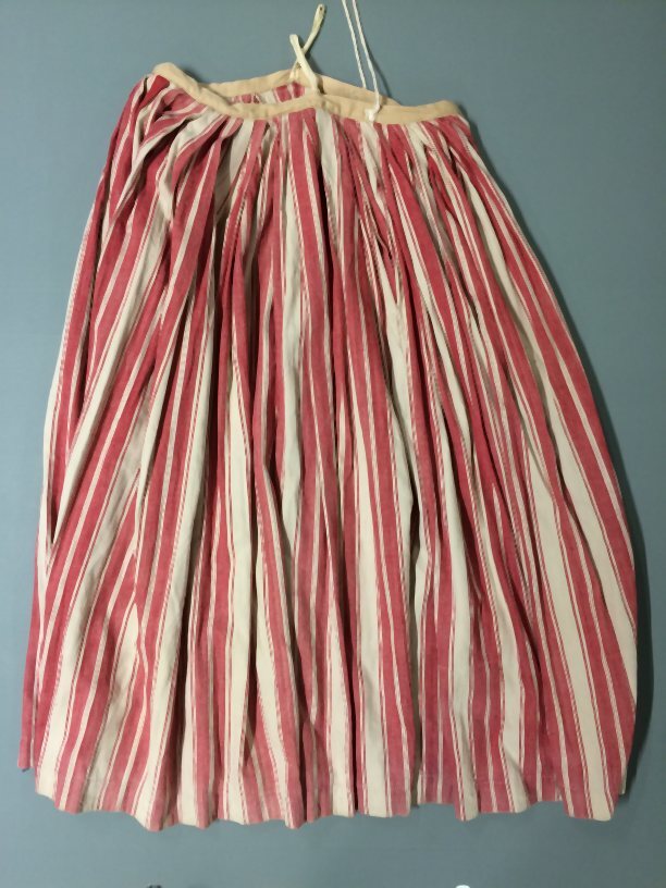 Wit katoenen onderrok met roze/rode strepen in de lengte