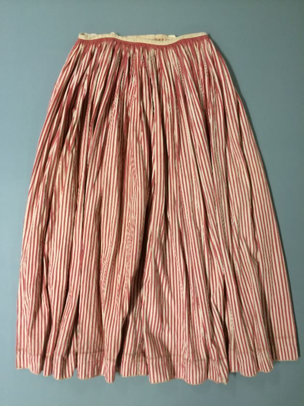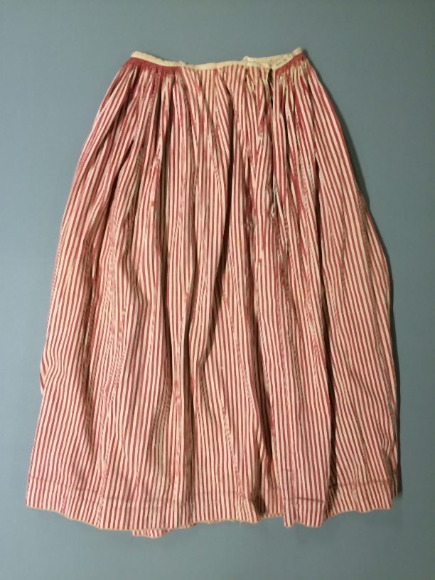Wit katoenen onderrok met dunne roze/rode strepen in de lengte