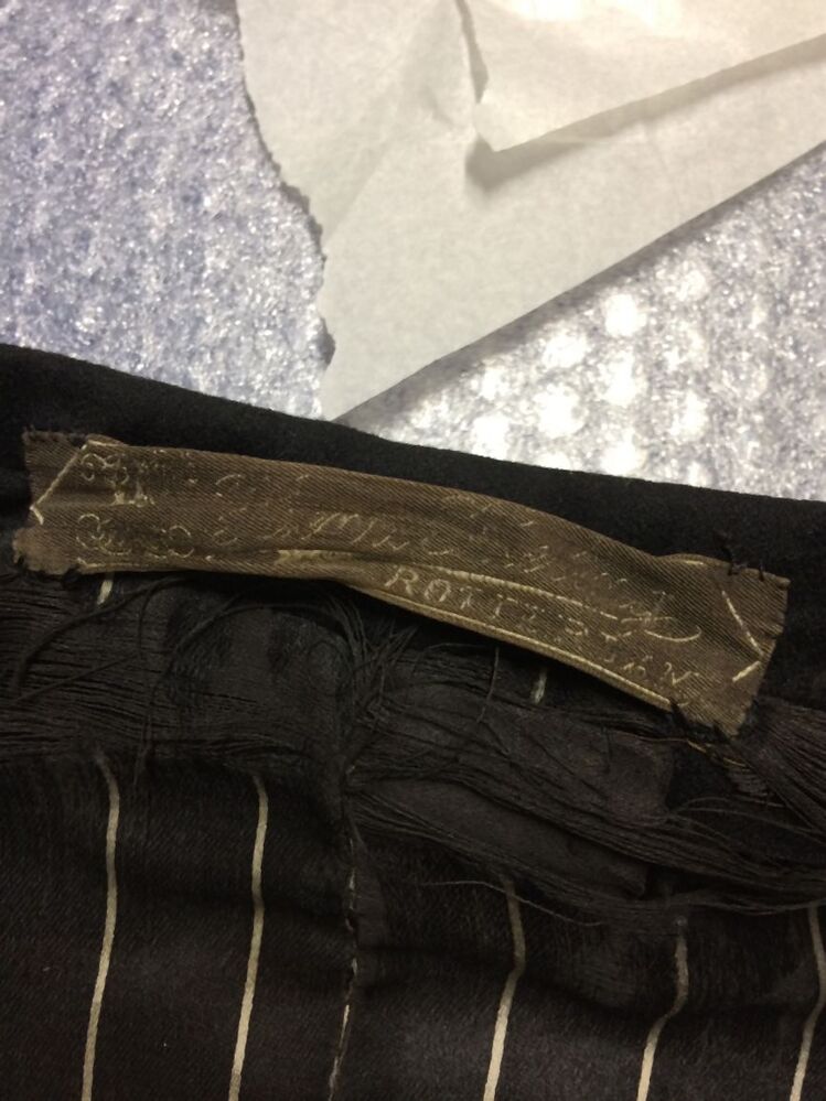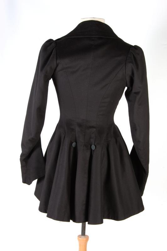 Zwart wollen paardrijjasje met double breasted sluiting met aangestikte schoot, volledig gevoerd