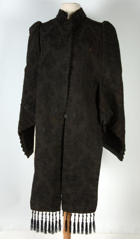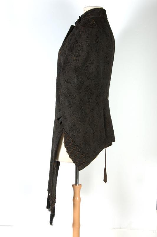 Donkerbruine wollen mantelet met ingeweven print
