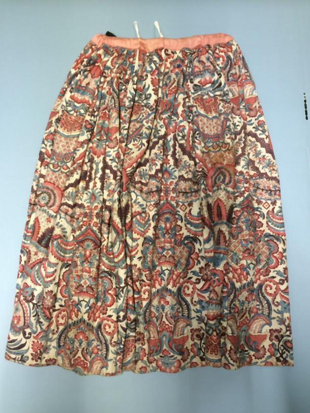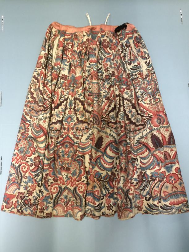 Bont gekleurde 'sitsen' rok, Europees katoen bedrukt met groot symmetrisch motief