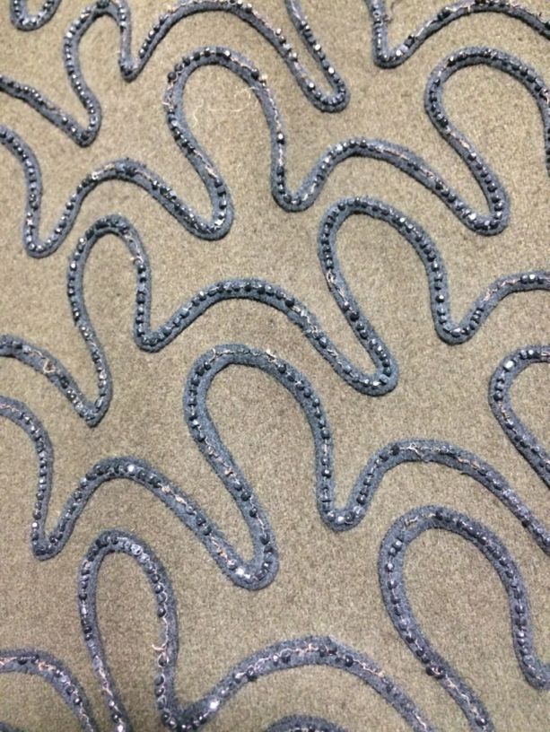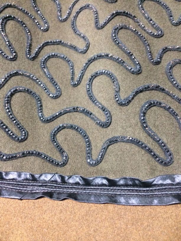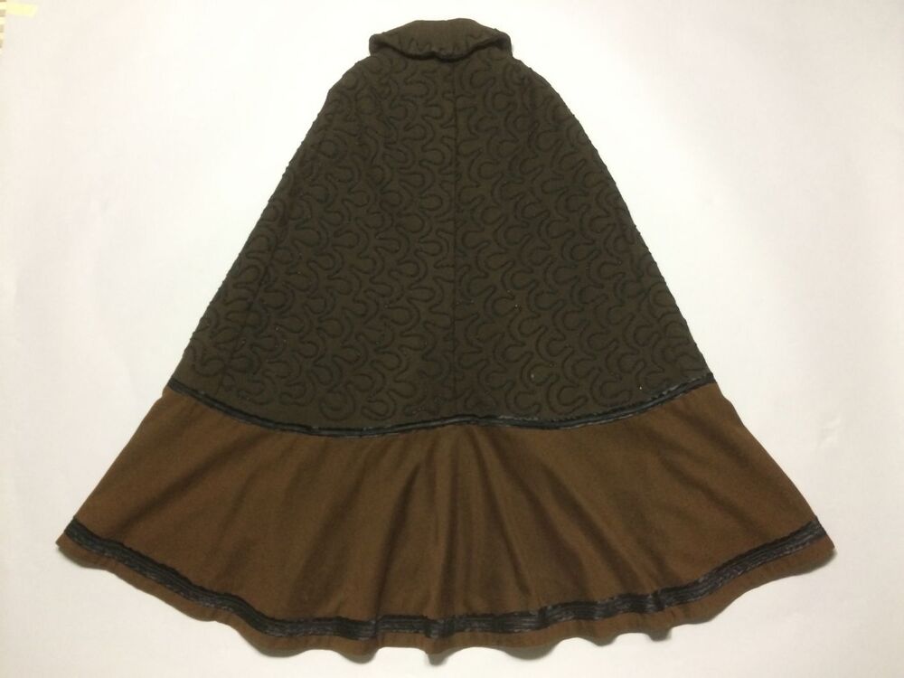 Donkerbruine wollen cape met opgestikt band en kraaltjes