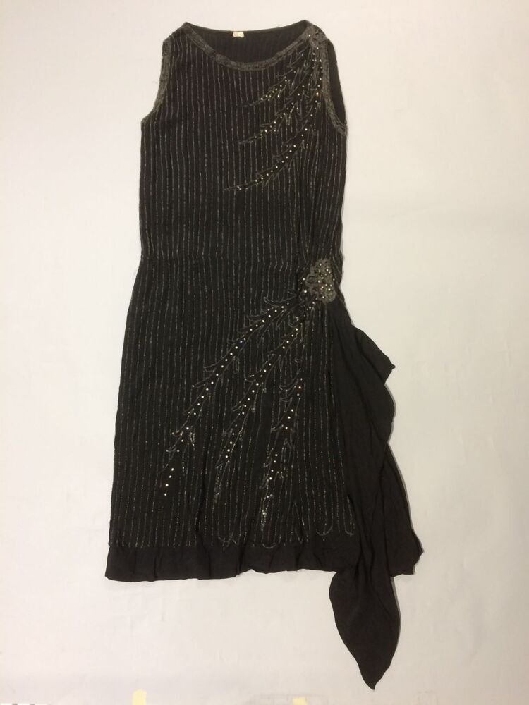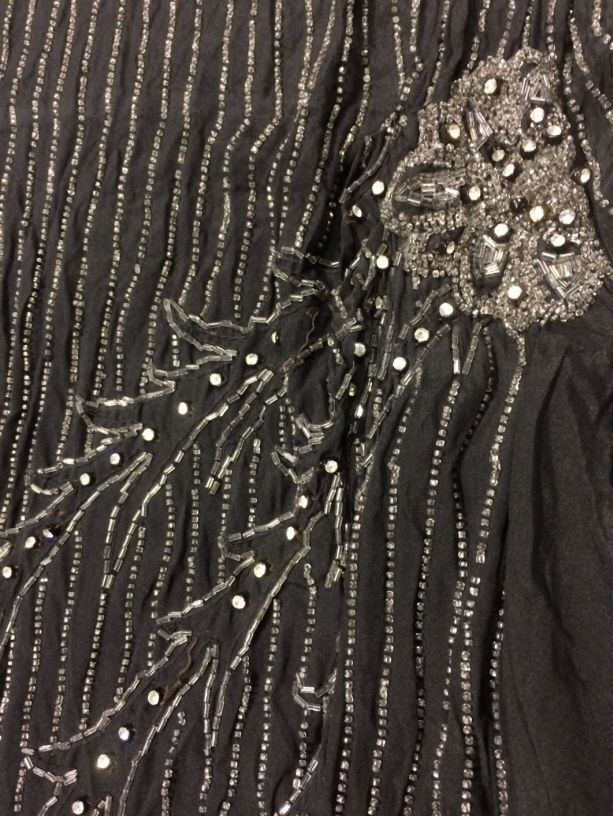 Zwart zijden jurkje met transparante kraaltjes en strass steentjes