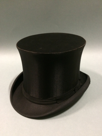 Zwarte zijden hoge hoed die inklapbaar is