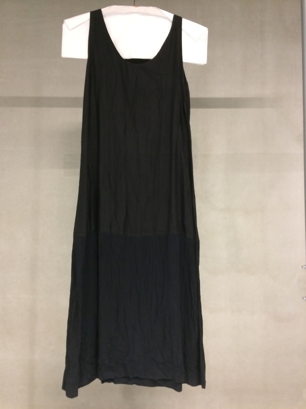 Lange zwarte mouwloze onderjurk met wijde en ronde hals
