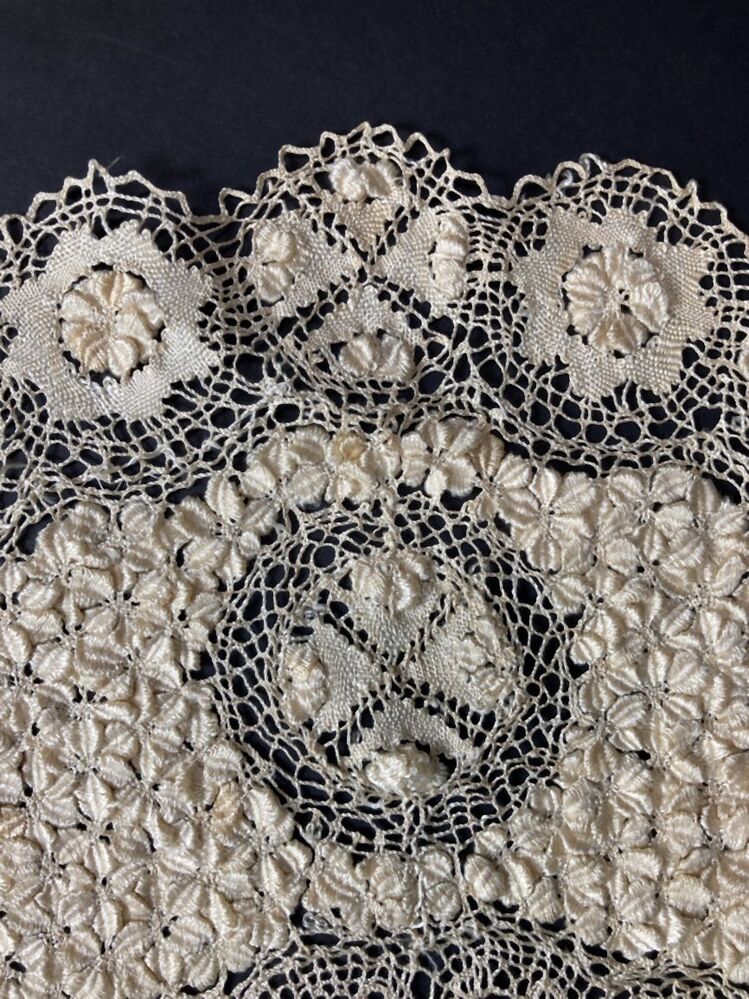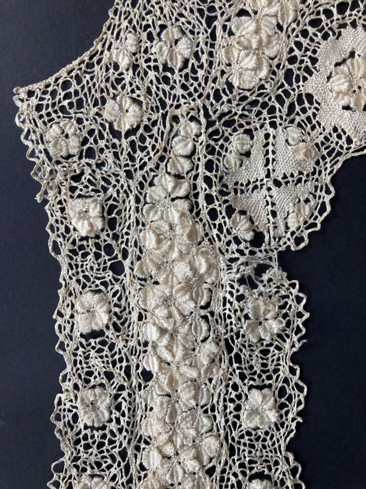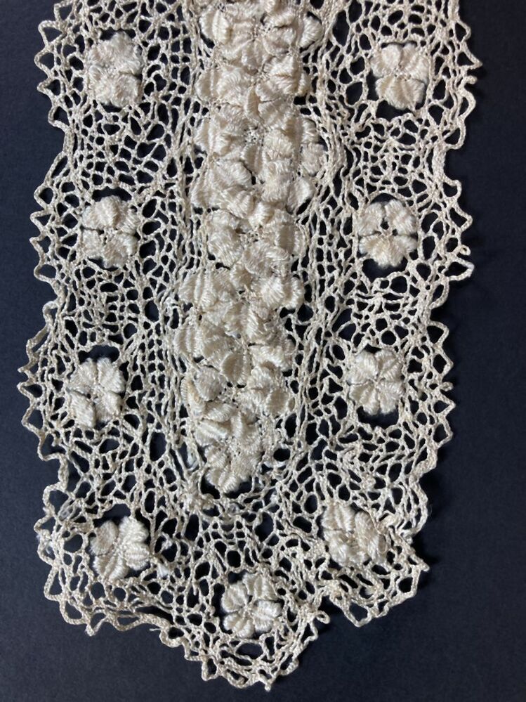 Brede ronde kraag met slippen van zijden kloskant uit Indonesië