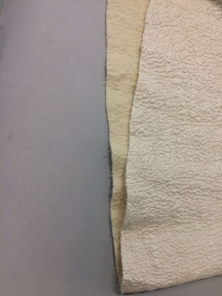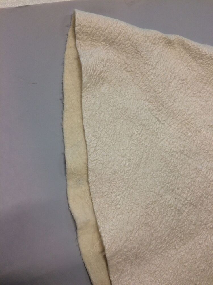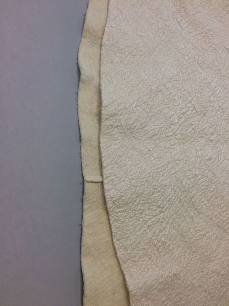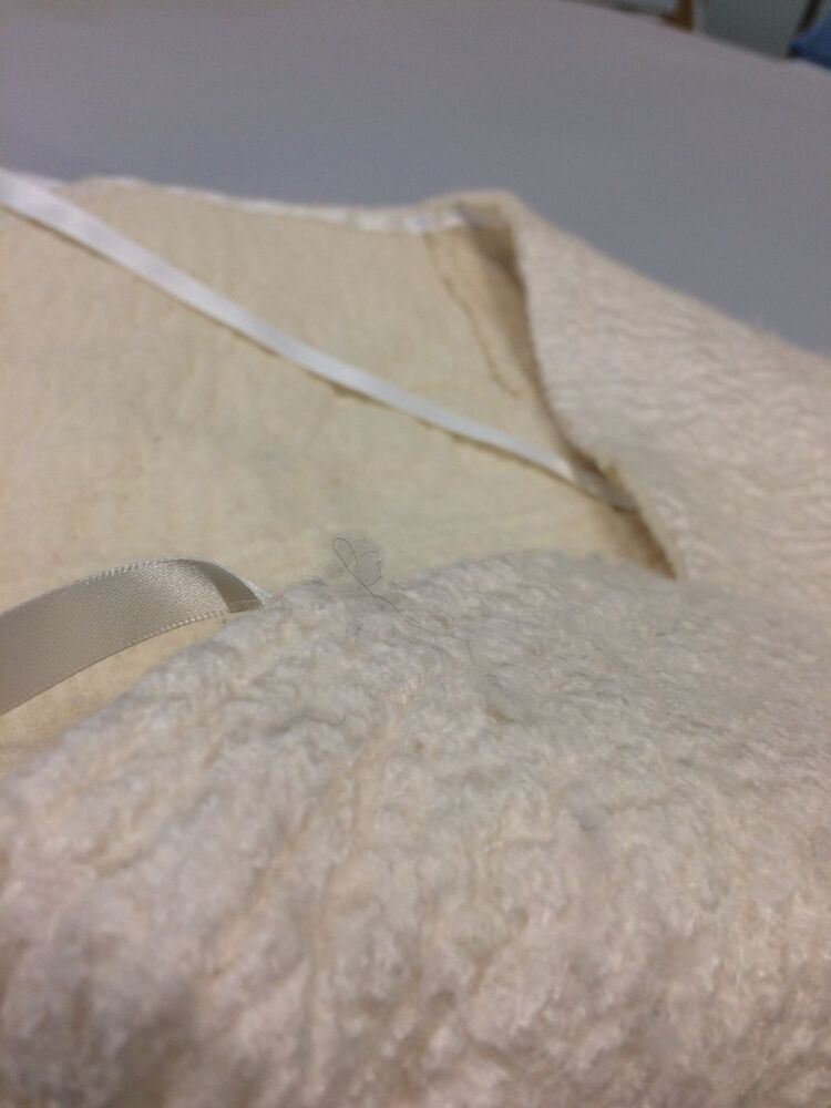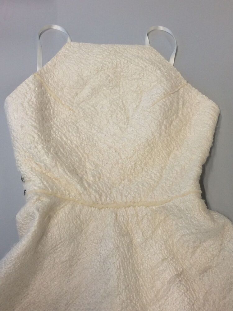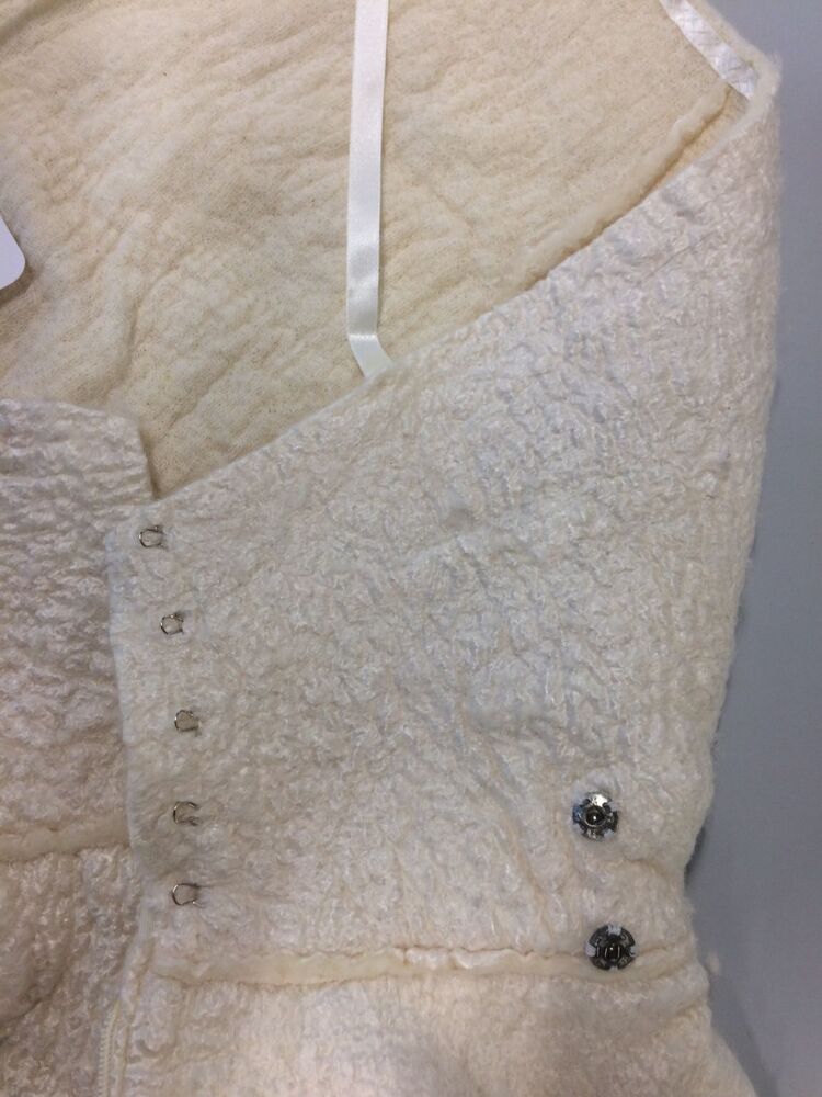 Vilten bruidsjurk met zijde, met bijbehorende sleep met vuurvogel en brede ceintuur