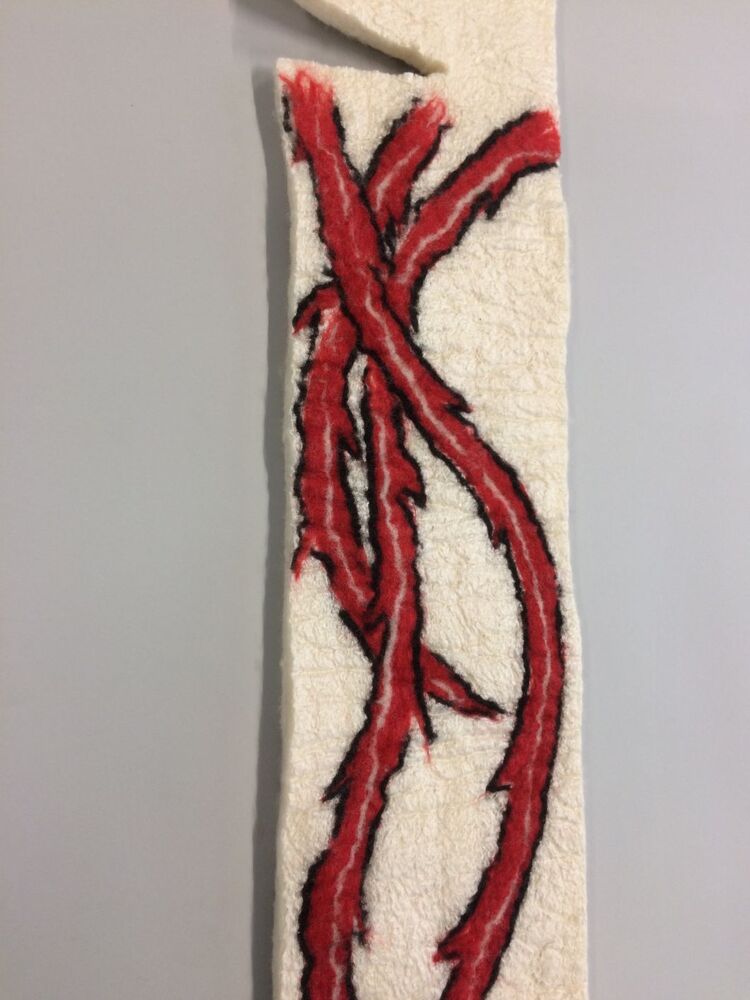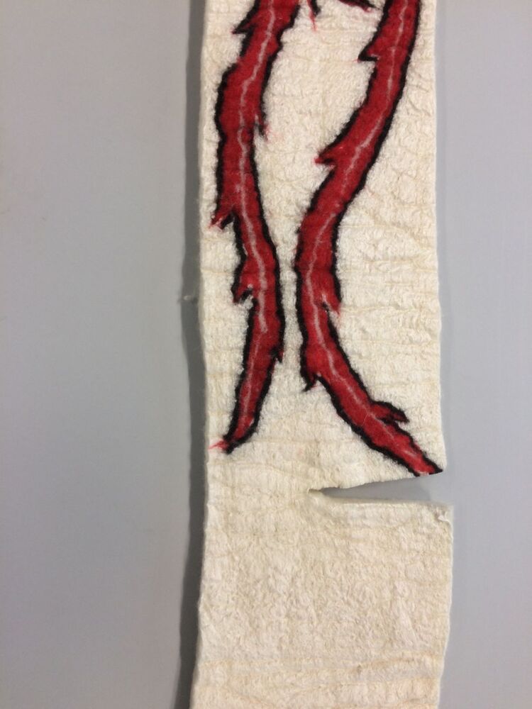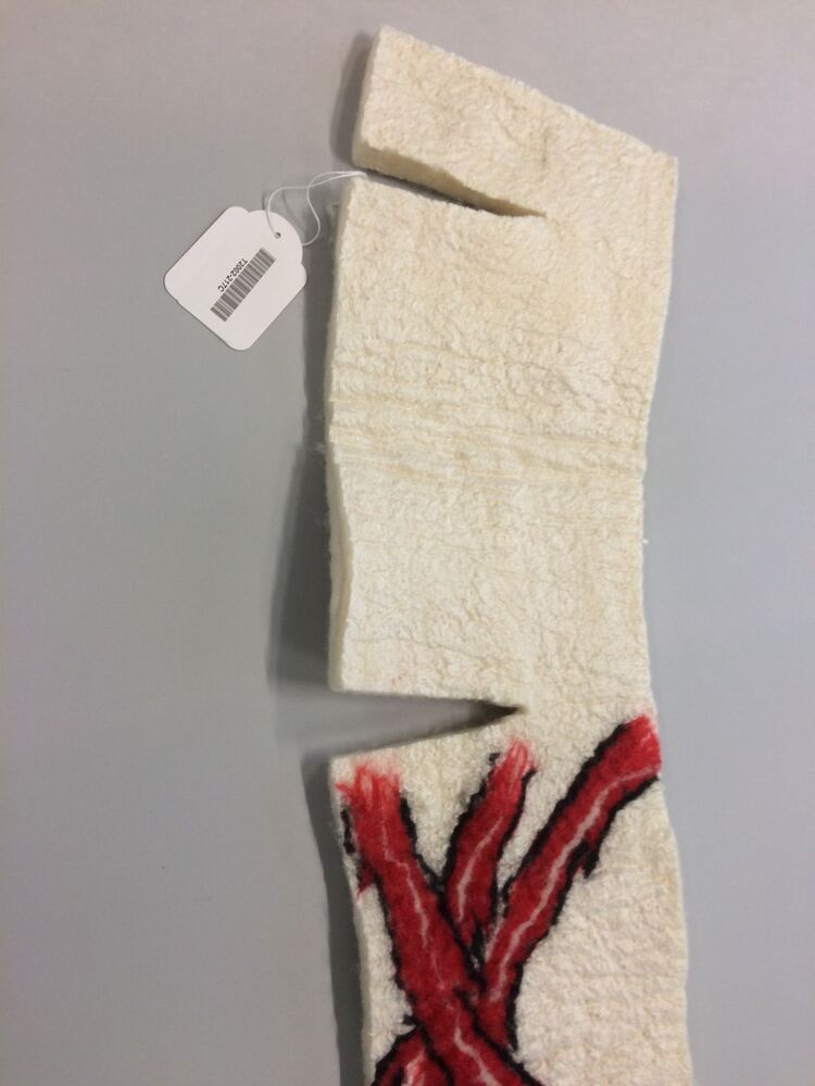 'Obi', brede ceintuur, horend bij vilten bruidsjurk met zijde en sleep met vuurvogel