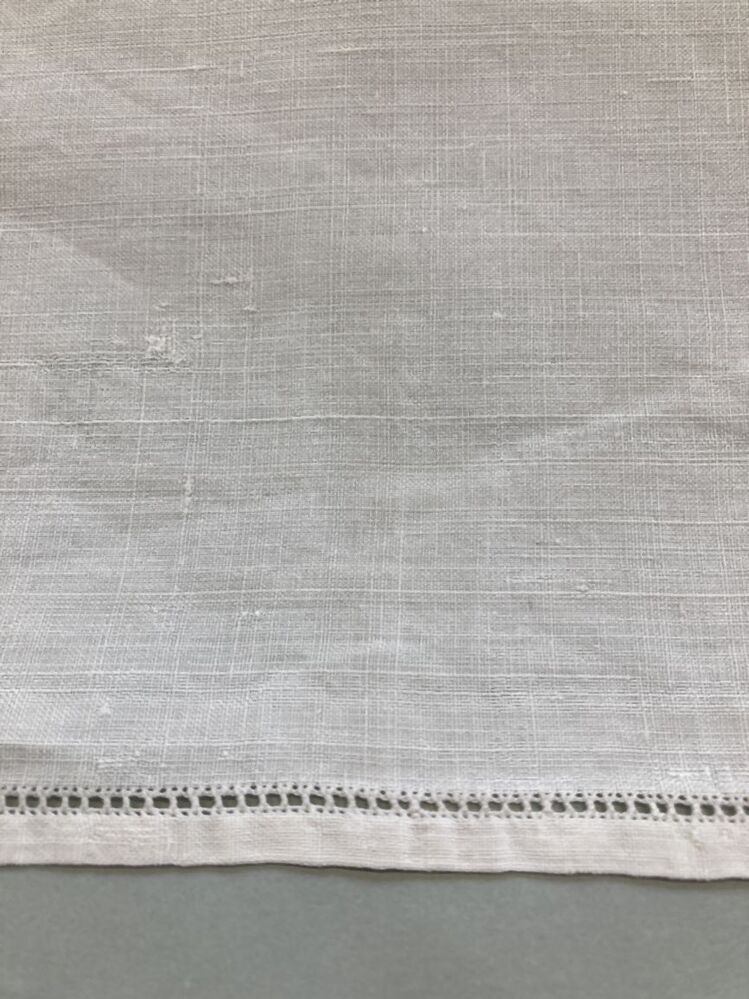 Linnen laken met dwars tussenzetsel van Hollands kloskant, gemerkt NI