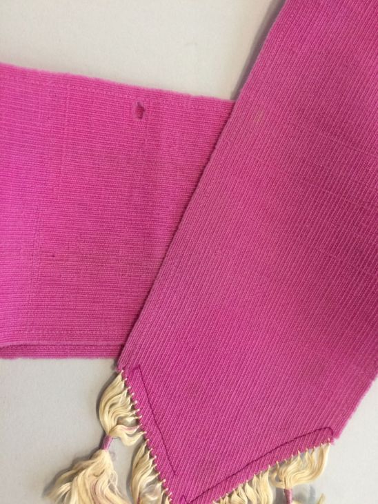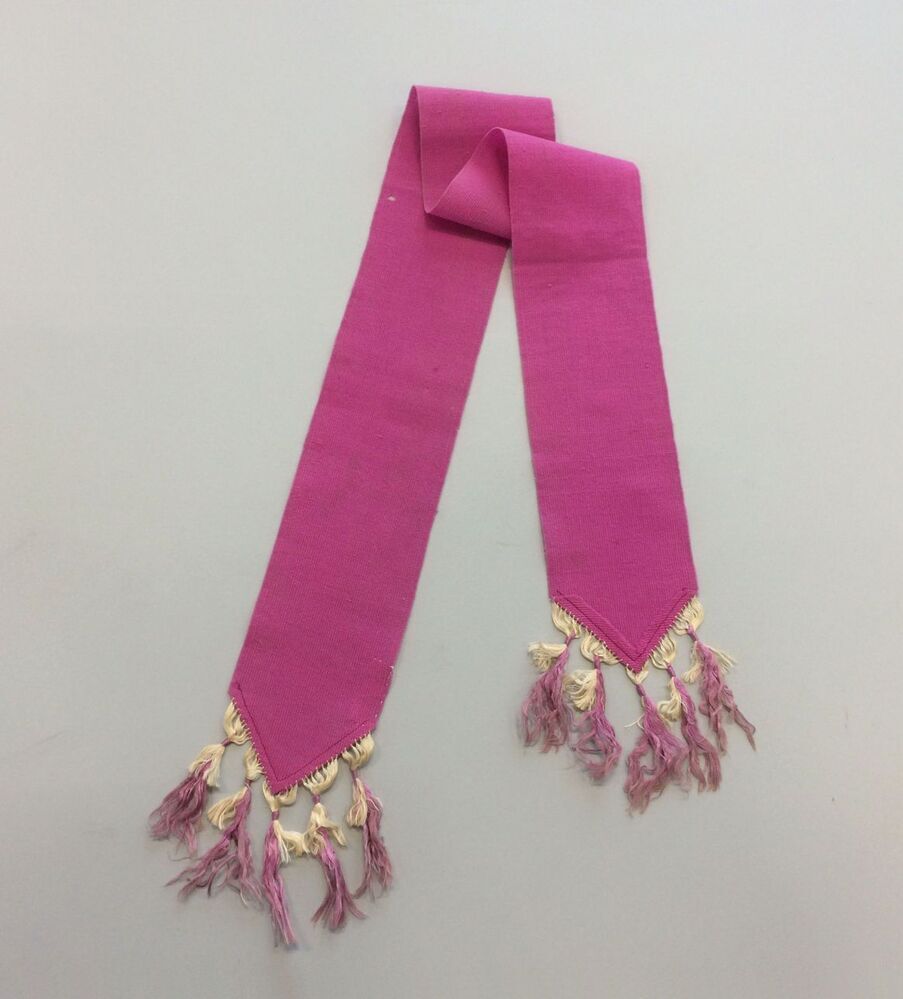 Smal licht-cyclaamroze wollen sjaaltje met zijden kwastjes