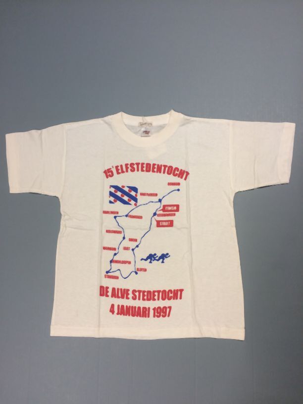 Wit kinder t-shirt met opdruk: 15e Elfstedentocht, de alve stedetocht 4 jan.1997