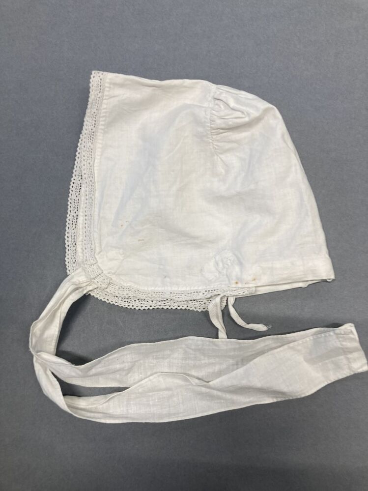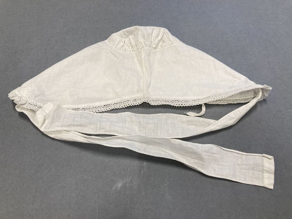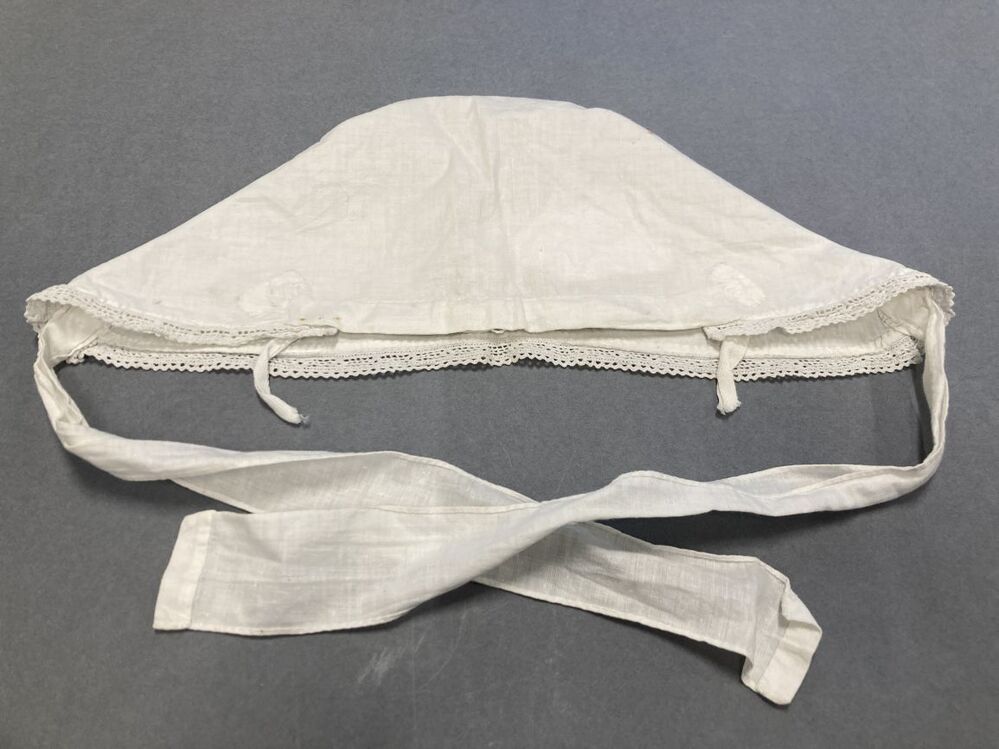 Wit katoenen vrouwenmuts met twee katoenen banden