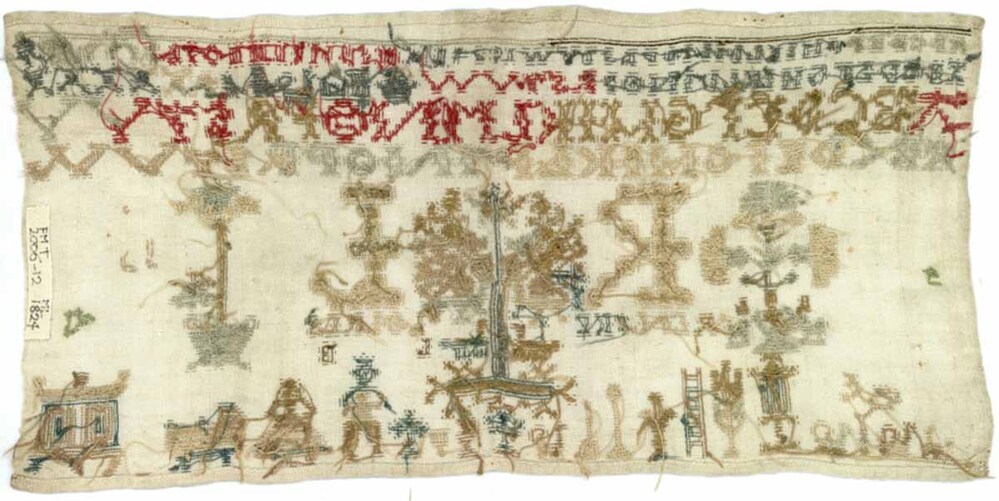 Merkletterlap, onaf, met centrale levensboom, gemerkt Renske Lolkes, 1824