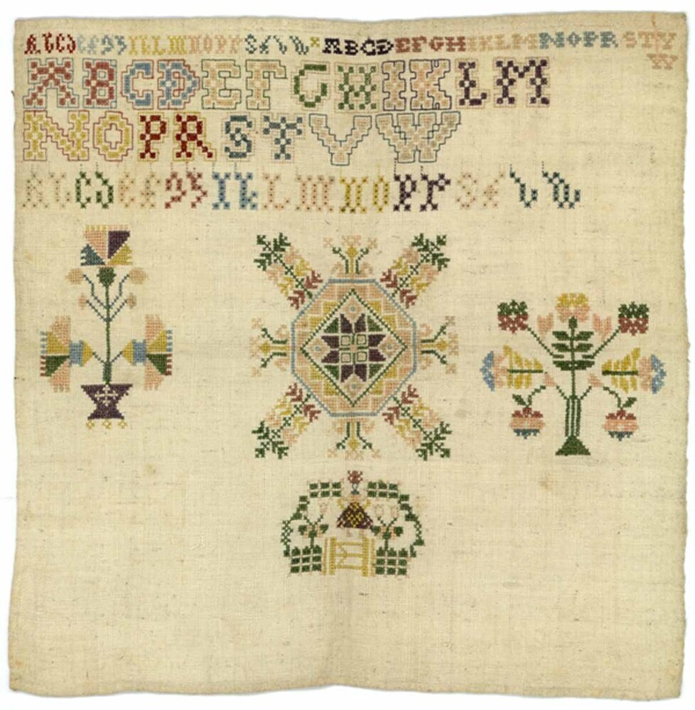 Merkletterlap, vierkant, onaf, met centraal geometrisch motief, zonder merken