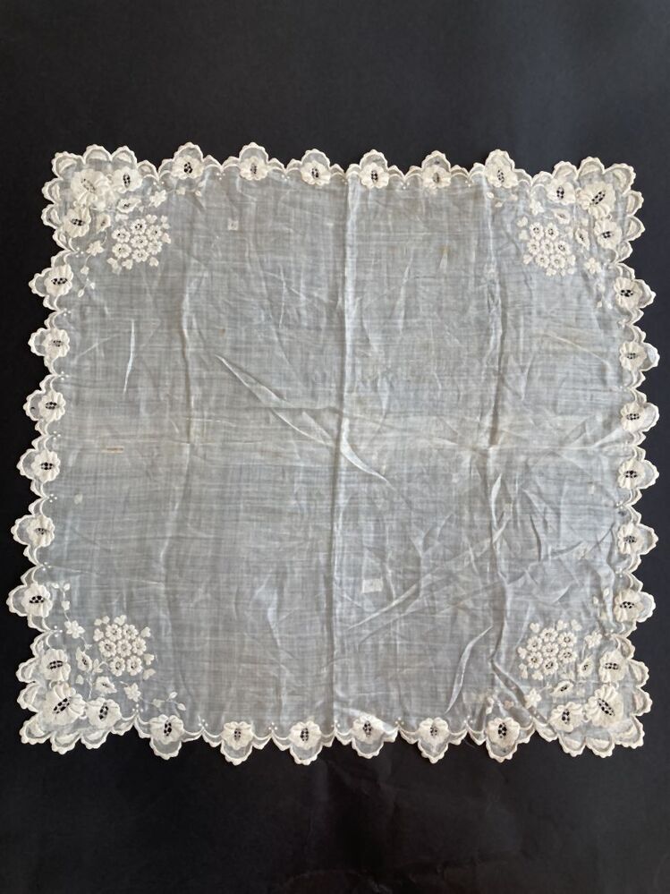 Batisten zakdoek met fijn geborduurde rand in Frans borduurwerk