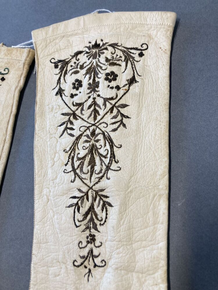 Bedekkingen voor de hand die iedere vinger apart omsluiten en soms doorlopen tot over de pols en arm. https://data.cultureelerfgoed.nl/term/id/cht/975a2d8f-e92e-4ee1-959c-8667df0db693