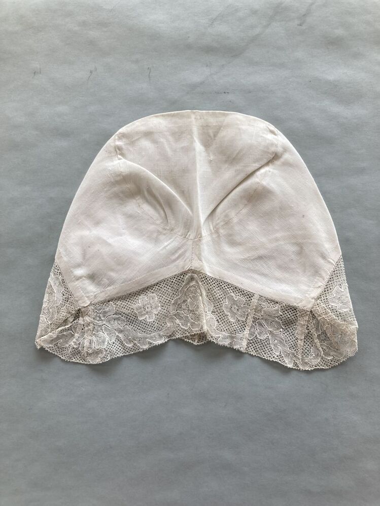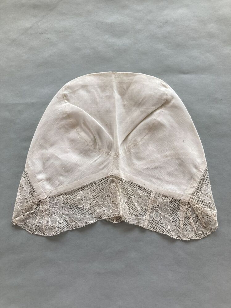 Tipmuts met strook van trollekant met Hollands kloskant motief met kontoerdraad