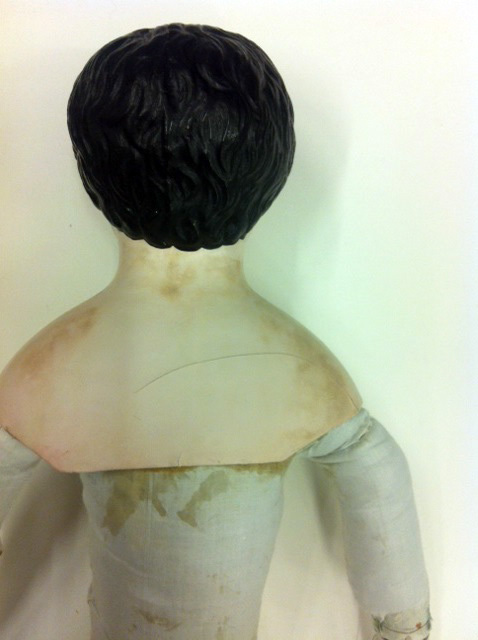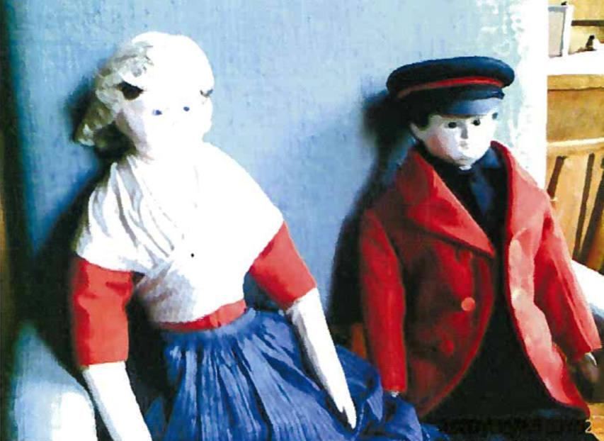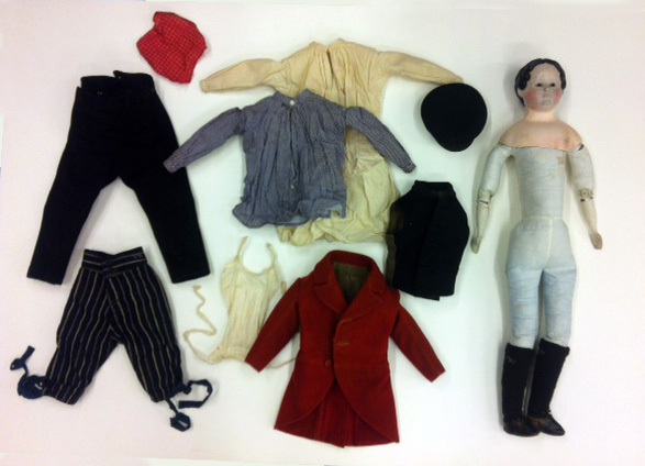 Pop van een jongen uit het Old Burger Weeshuis te Leeuwarden, gekleed in de weeshuisdracht, een van twee poppen, jongen en meisje